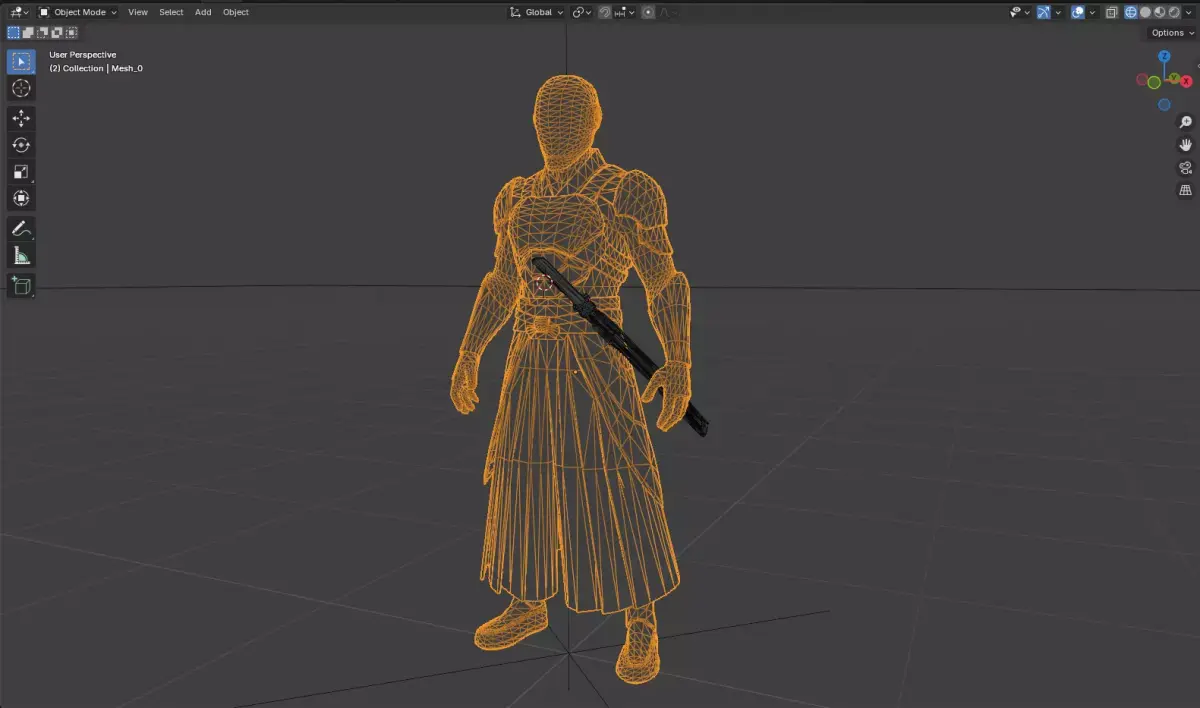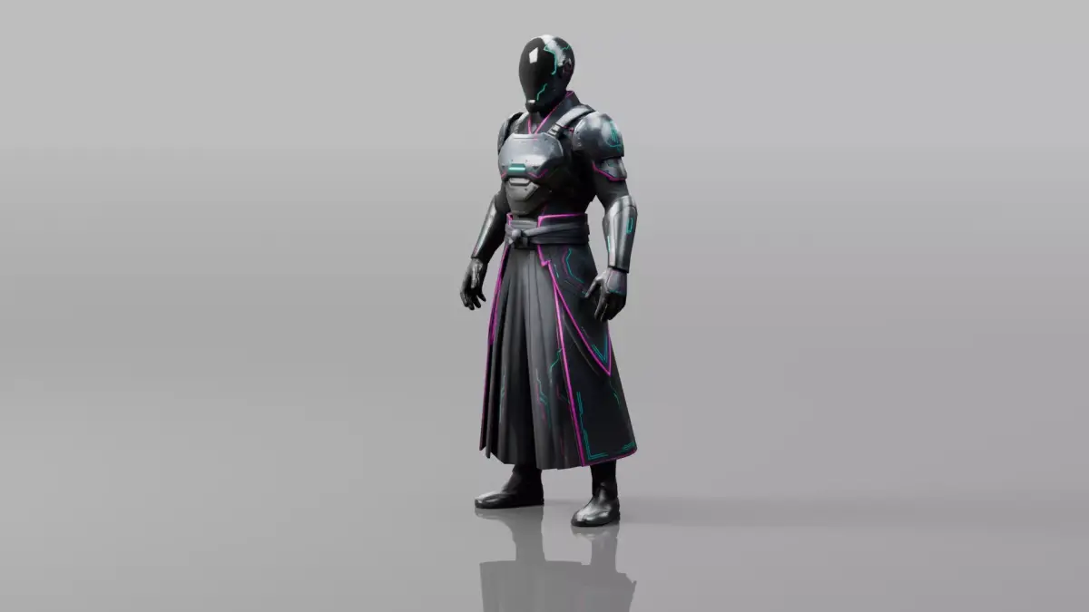 Easy-to-use stylized cyber samurai character with a matching futuristic energy katana, designed for games, cinematics, and real-time applications.