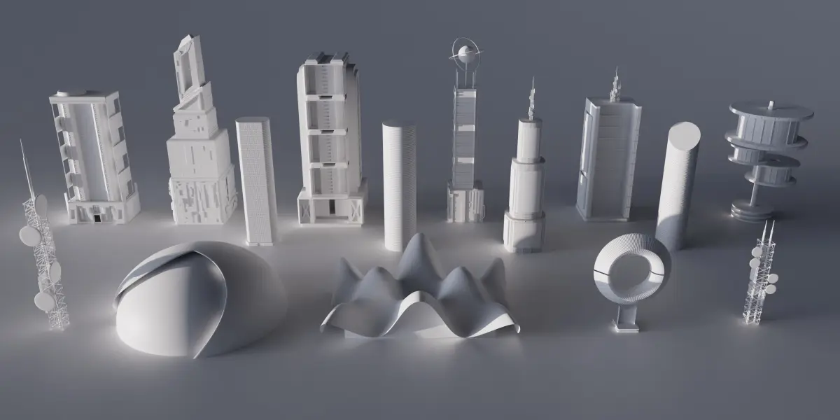 Cyberpunk Sci-fi futuristic building pack mid-poly 3D model Low-poly 3D model