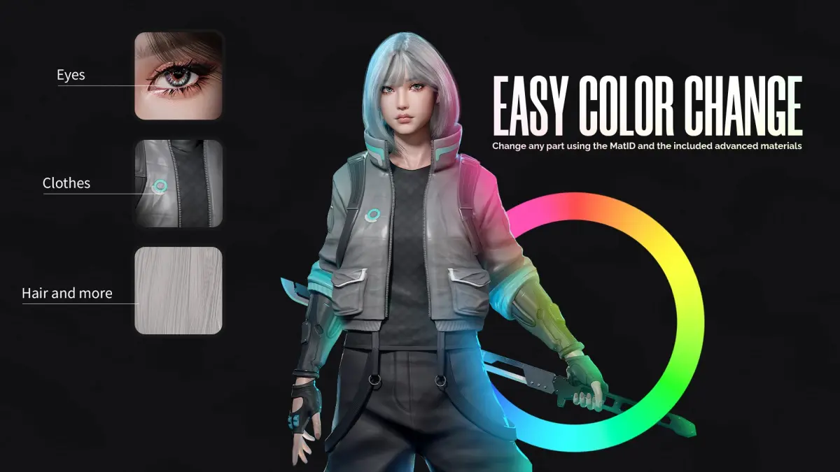 Cyberpunk Street Fighter - Game Ready is part of a Cyber-themed pack. Street Fighter comes with many customization options, advanced shaders, ARKit blendshapes, UE5 Rig, and many color options. Compatible with other of my models, and perfectly suits any game needs. Different Hairstyles, 2 Clothes options: full and lingerie.