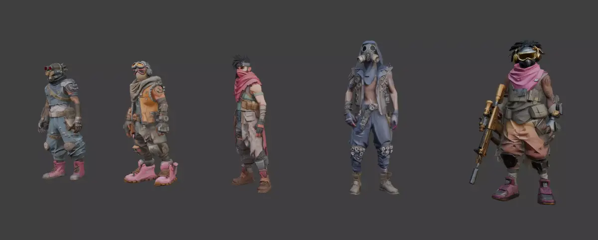 Lowpoly stylized cyberpunk charactersStrong silhouettes and readable designsDistinct outfits and gear variationsGame-ready geometryOptimized for real-time renderingSuitable for customization and kitbashing