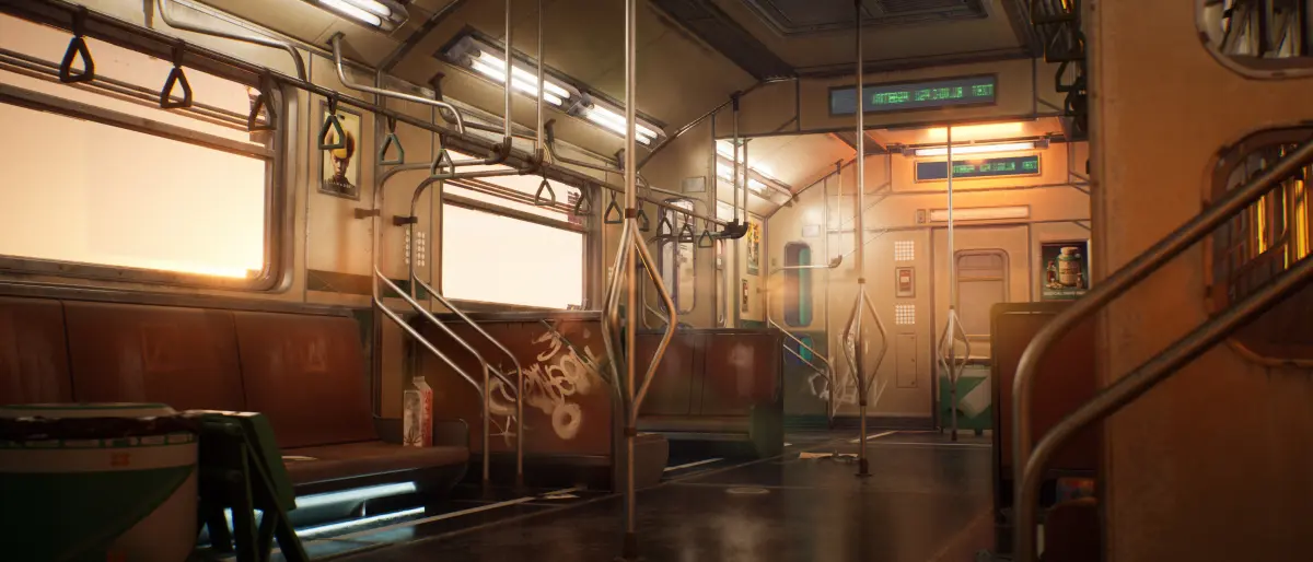 Cyberpunk Subway Environment Kit. Contains number of high quality meshes to build realistic/cyberpunk/sci-fi subway train. There are a number of modules, custom materials and decals for set dressingAlso package includes detailed demo map with train interior and moving city to showcase moving train.