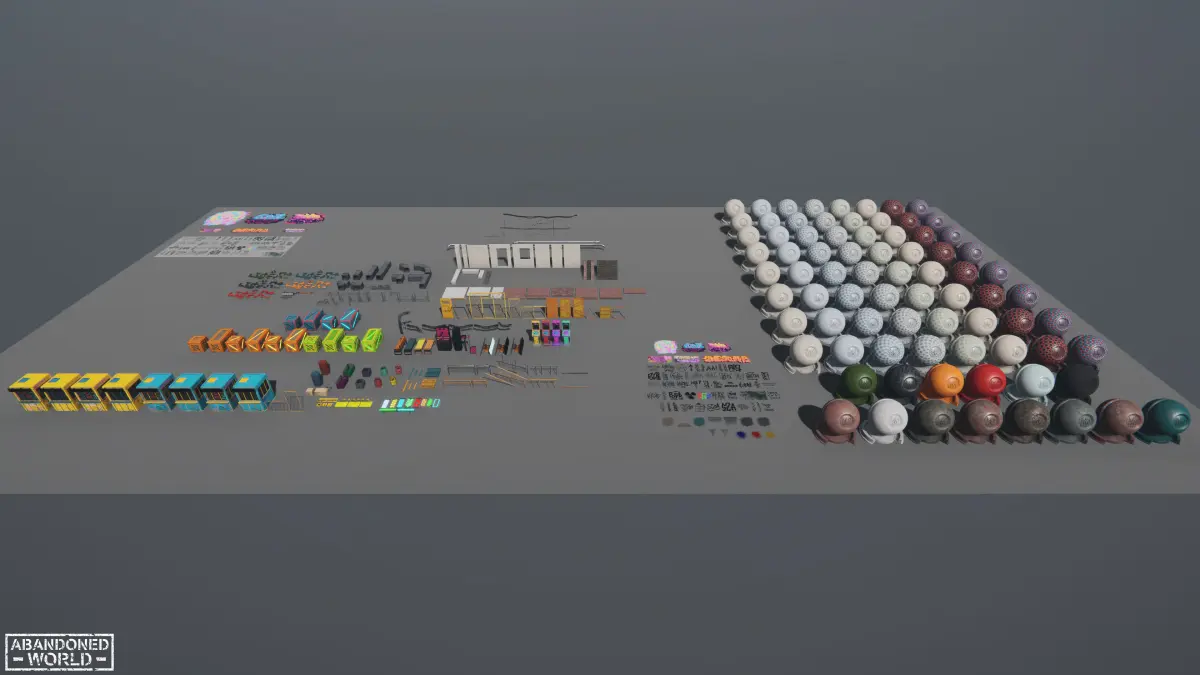 The set includes graffiti drawings, inscriptions and tags made specifically for this package. The stage is prepared with baked static lighting. Also in the package there are elements of ventilation and pipes, garbage, boxes, a stall, monitors, technical equipment and other.