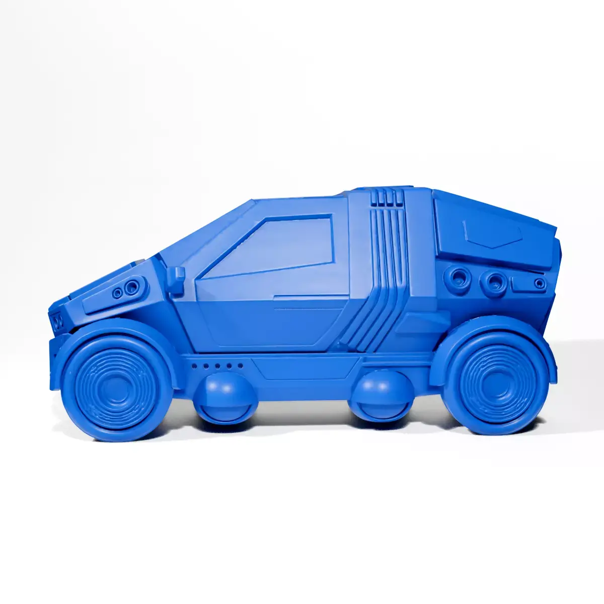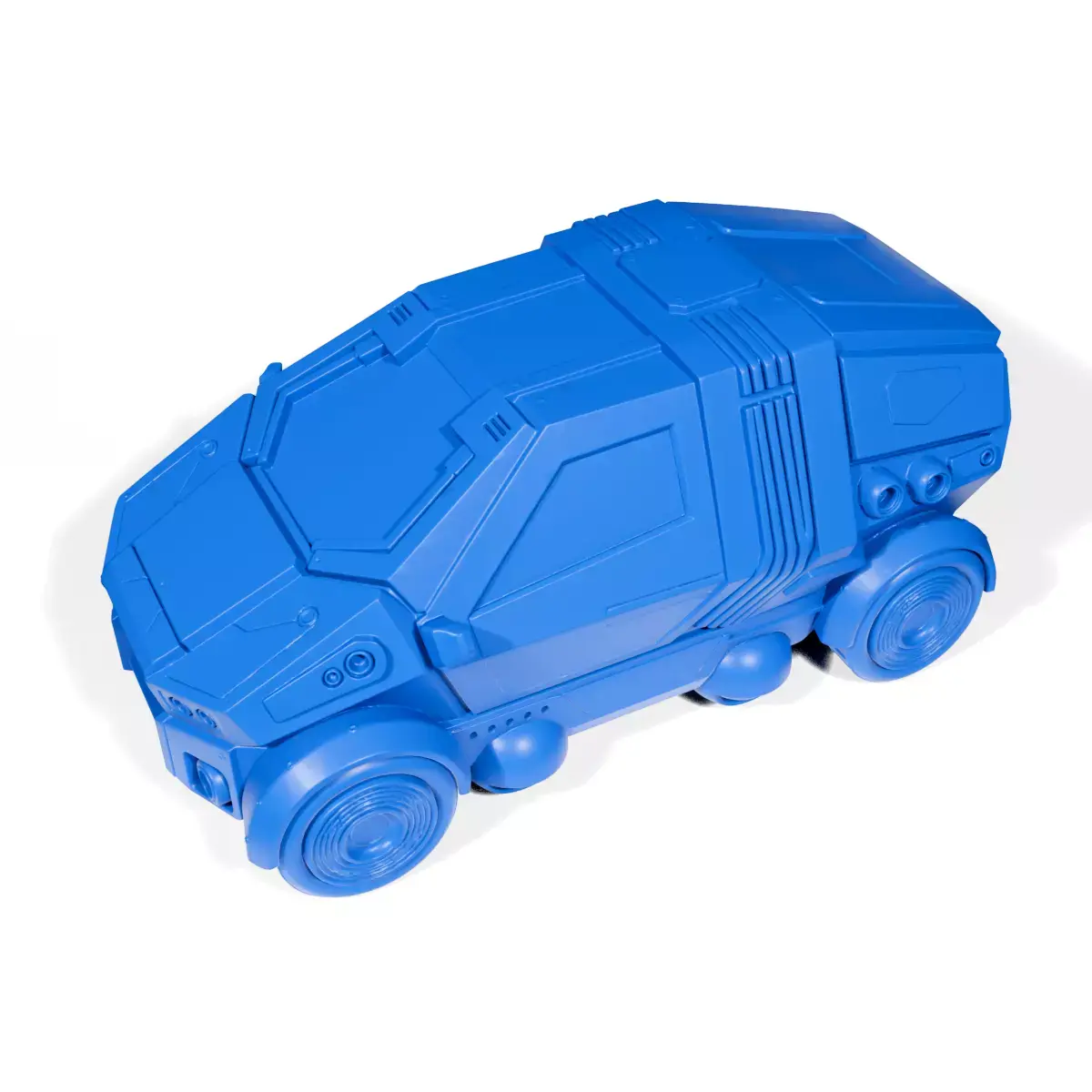 Ideal for enthusiasts of cyberpunk design and urban futurism; can be used as a collectible model or toy.