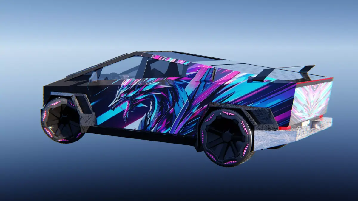 I made this for fun for a Japanese themed event that I was participating in. It is a model of a Cybertruck that I had made by following a tutorial. After which I made alterations to make it more accurate to the real world Cybertruck and then from there I started stylizing it from a reference of an old wallpaper I've had for ages. The wrap on the outside is an AI image that you can easily remove. I will include a few different colors if you want them instead. Though you will likely have much better results adding your own materials. The UVs are done in a relatively, but sort of strategically manner in order to accomodate that. The .blend file will have by far the best materials. Please note: The Blender version of this is in 5.0. So if you want the blend file then you will need Blender 4.5 or higher! The only thing AI on this entire object is the dragon image.