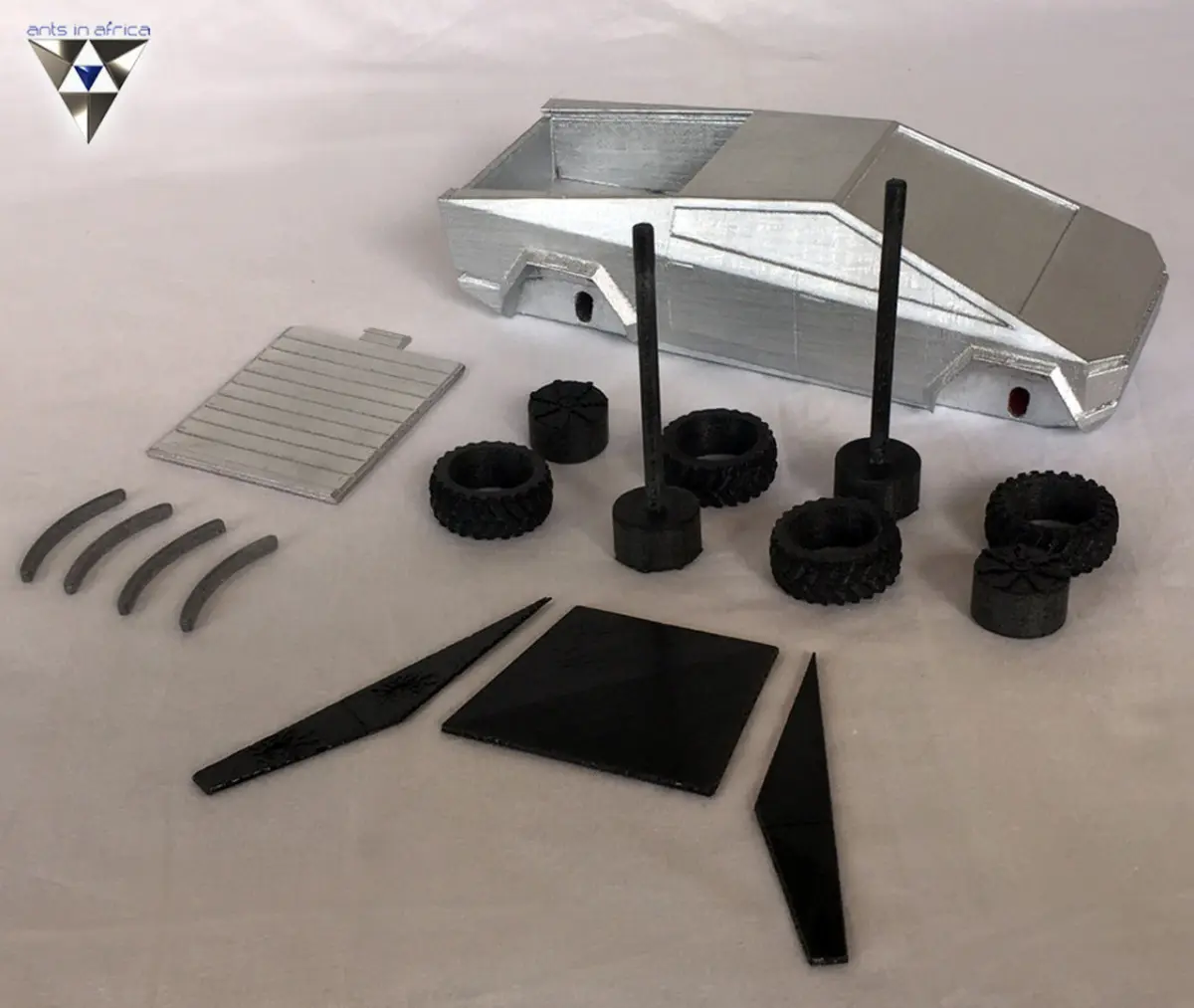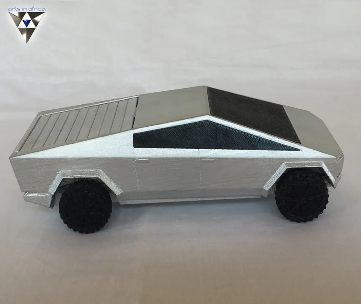 This little Cybertruck is a fun, free and easy to print toy car/Flash drive holder/pencil case.It features a rudimentary suspension system, rotating wheels and has a rear cover that slides open and is held closed with a clip.When assembled, the model is 200mm long, 86mm wide and 67mm tall.I left it open to the headlight and tail light so that lights can be fitted inside if desired.
