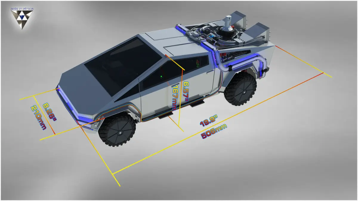 It shares features with the regular Cybertruck like the Drive system and steering, but the rest is unique to this time machine.A bigger motor is needed compared to what I used, but I do provide different motor mounts.I will gladly build custom mounts if you have issues, so please let me know.