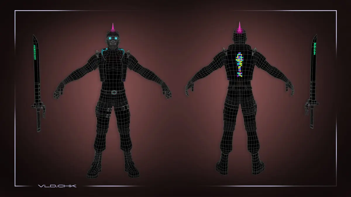 Low-poly model of the character CyberWarrior