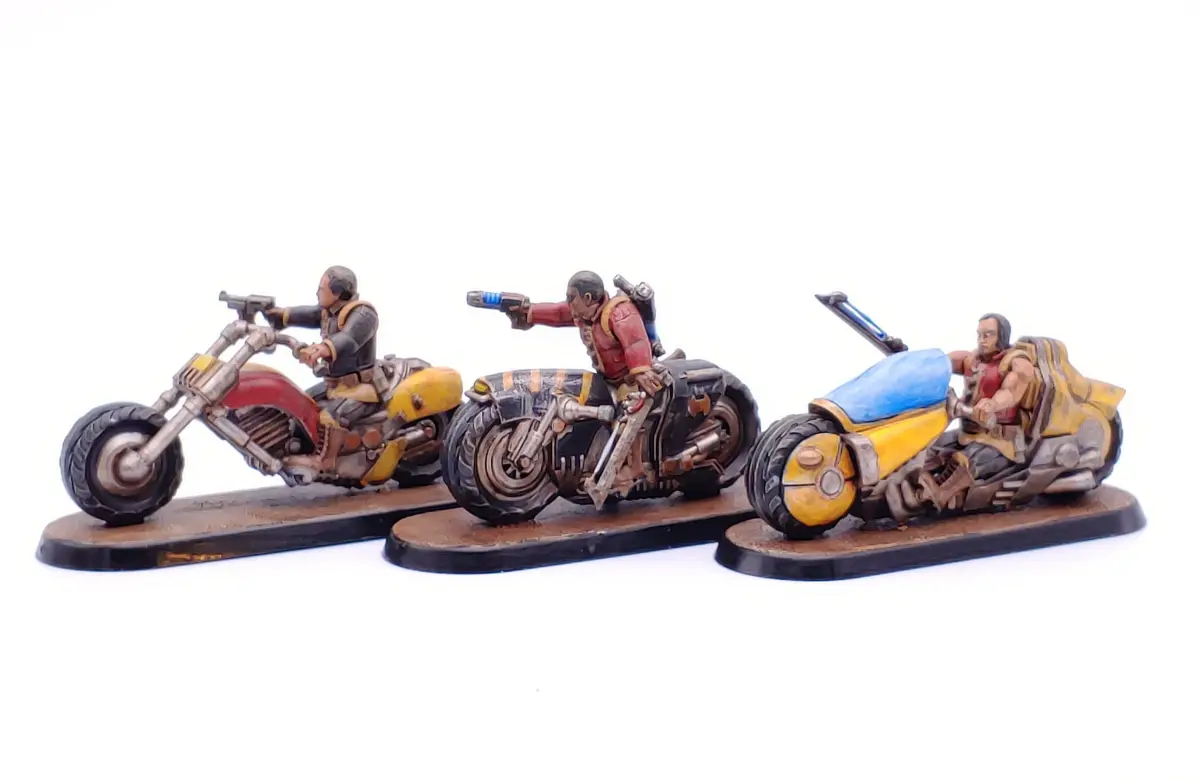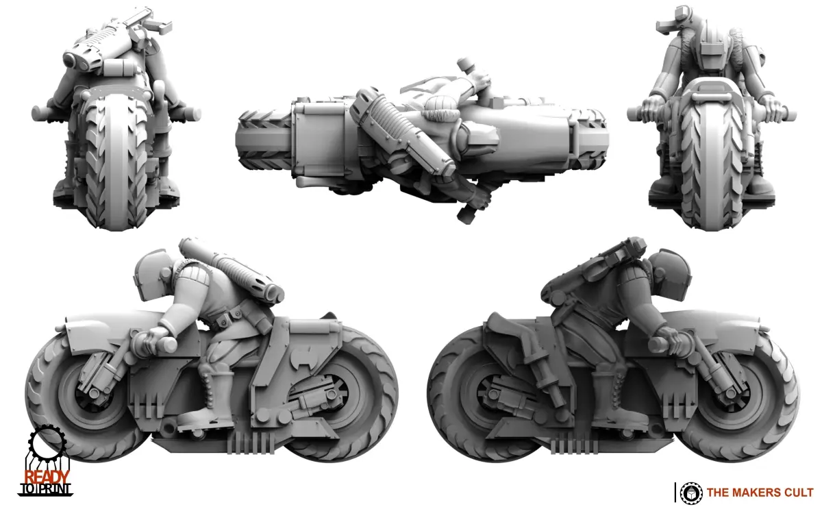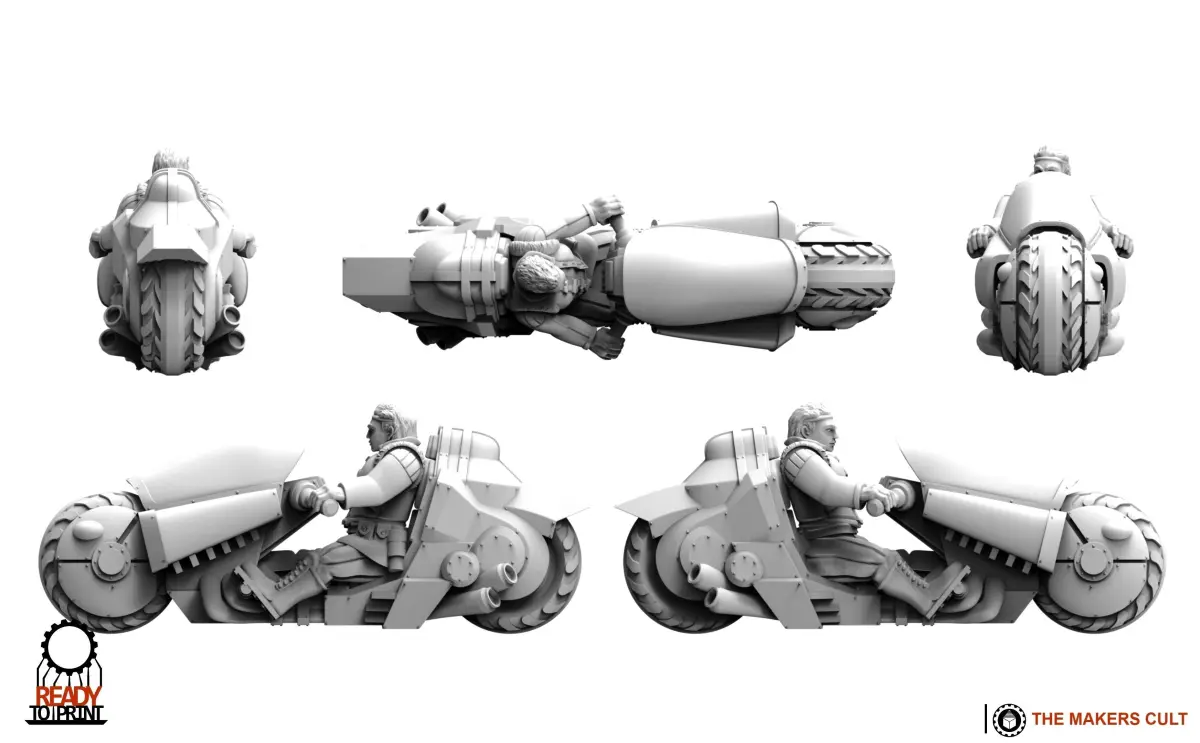 This multi part kit contains the components needed to build a squad of Cyberzerker Bikers. These are modular sets that are compatible with the entire Cyberzerker range.