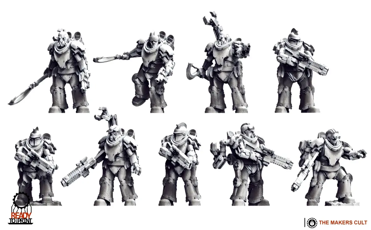Every part is included with both supported and non-supported versions for ease of printing.Test models were made on an anycubic photon. Printed at 0.05mm layer height, Esun's bio-PLA resin (grey) 9.5s standard exposure. Models are scaled for 30mm gaming. Parts require support. Recommended resin printing, or FDM with a 0.2mm nozzle.