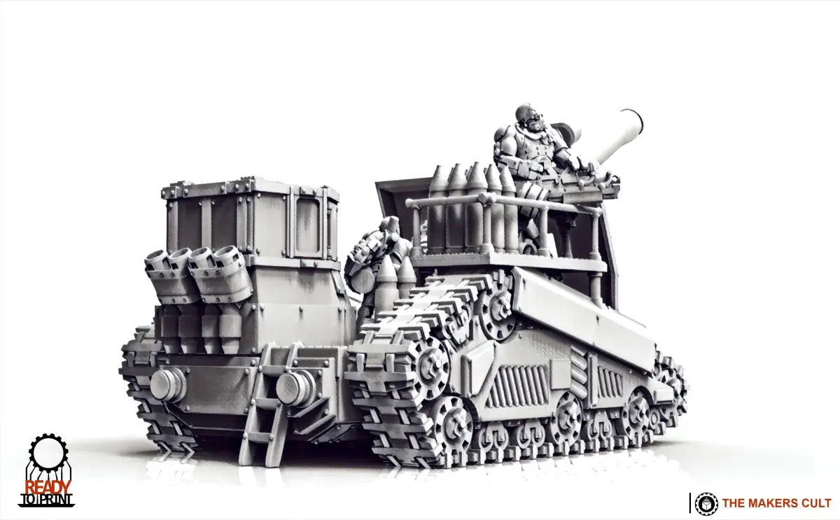 This multi part kit contains the components needed to build a Cyberzerkers Cannon Platform. Crew and ammuniton included.The right side tread, and shield must be mirrored to create the left side components.