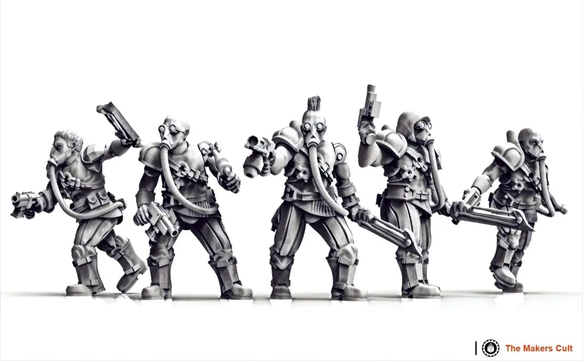 The Cyberzerker clans are some of the toughest wastelanders in the Great Terrin Basin. Their halmarks are advanced bionics, genome modification and liberal use of nanite and combat stims whose recipies have been passed down for thousands of years.This kit contains all you need to build a squad of thrashers. Each comes with a male and female version as well as various melee and pistol weapons.Every part is included with both supported and non-supported versions for ease of printing.Test models were made on an anycubic photon. Printed at 0.05mm layer height Esun's bio-PLA resin (grey) 9.7s standard exposure Models are scaled for 30mm gaming. Parts require support. Recommended resin printing, or FDM with a 0.2mm nozzle.
