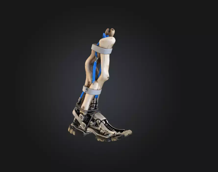The limb could belong to a cyber-enhanced creature, a reanimated construct, or a post-apocalyptic survivor outfitted with improvised tech to restore lost mobility. It hints at a world where technology has learned to merge seamlessly with the remnants of biological forms—a world where bones, wires, and steel coexist as one. Whether used as a collectible item, character upgrade, or environmental storytelling prop, the Bone-Strider captures a unique blend of horror, sci-fi, and mechanical artistry.