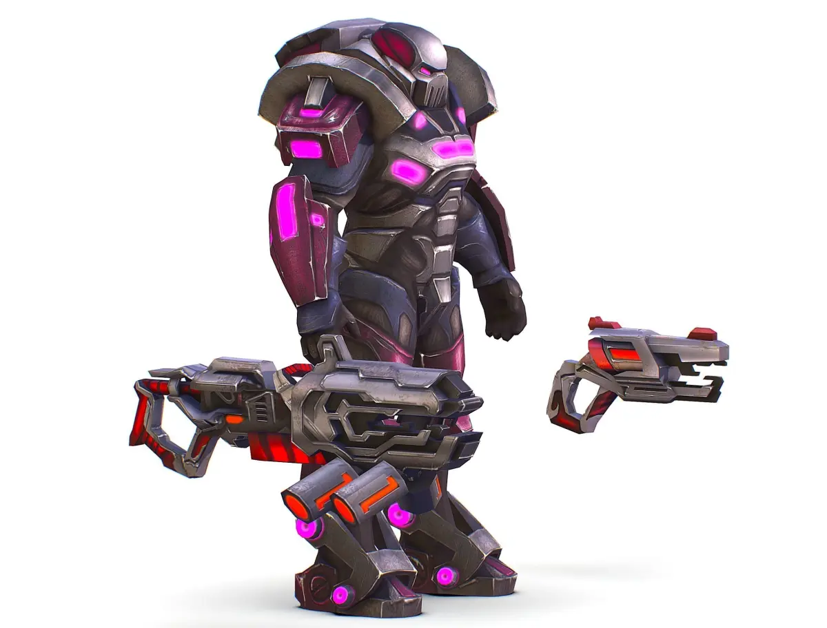 Step into the future of 3D design with our low-poly male soldier with a machine gun and pistol. This meticulously detailed model is the perfect blend of sci-fi aesthetics and practical functionality, ideal for game developers, animators and digital artists.