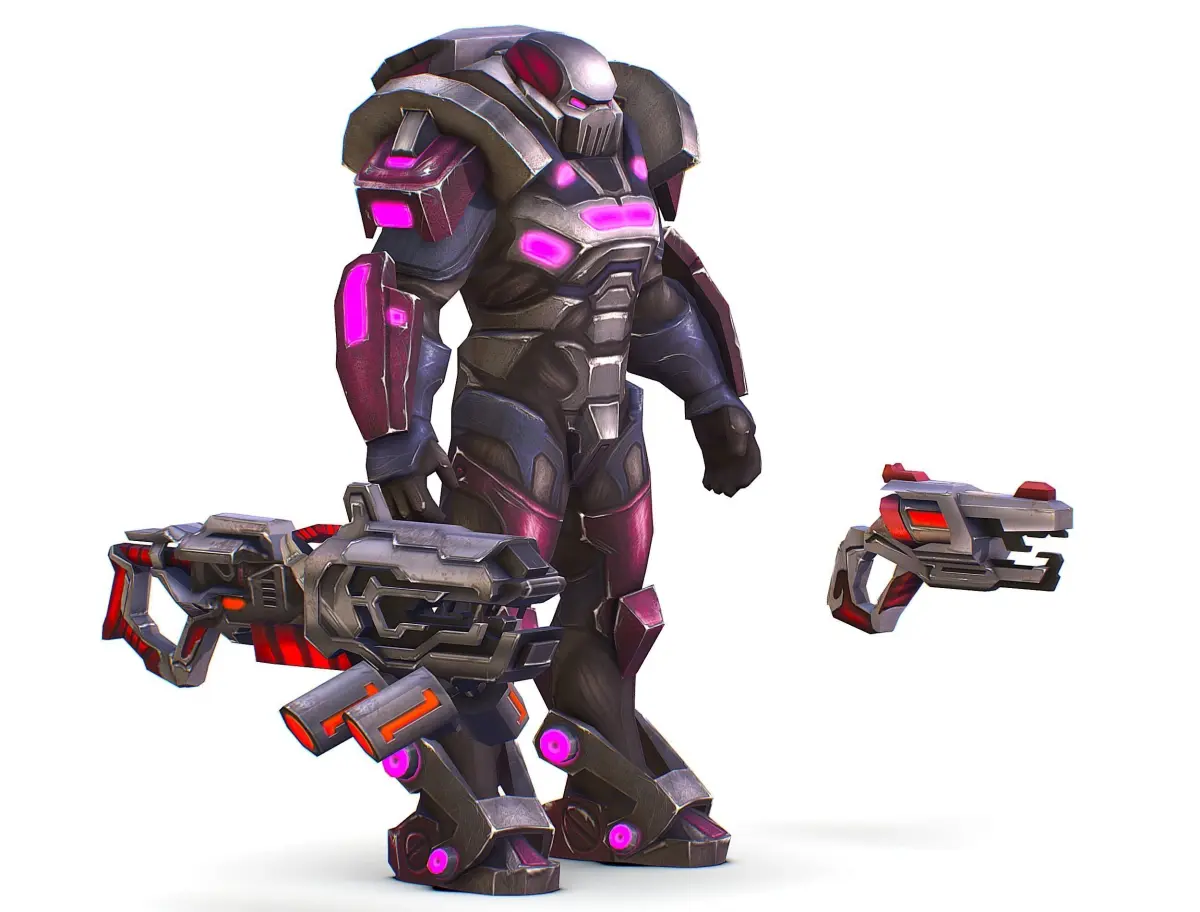Cyborg Machine Gun with Automatic Rifle and Pistol - 3dsMax Low-poly 3D model
