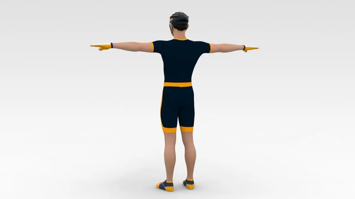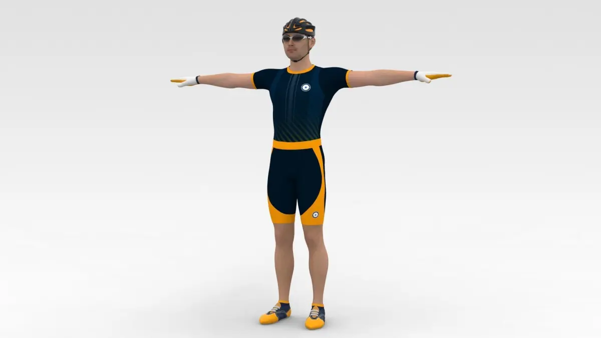 Description:Bicyclist 3D model is a high quality, photo real model that will enhance detail and realism to any of your game projects or commercials. The model has a fully textured, detailed design that allows for close-up renders.