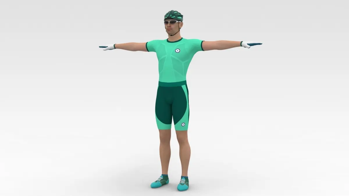 Description:Bicyclist 3D model is a high quality, photo real model that will enhance detail and realism to any of your game projects or commercials. The model has a fully textured, detailed design that allows for close-up renders.