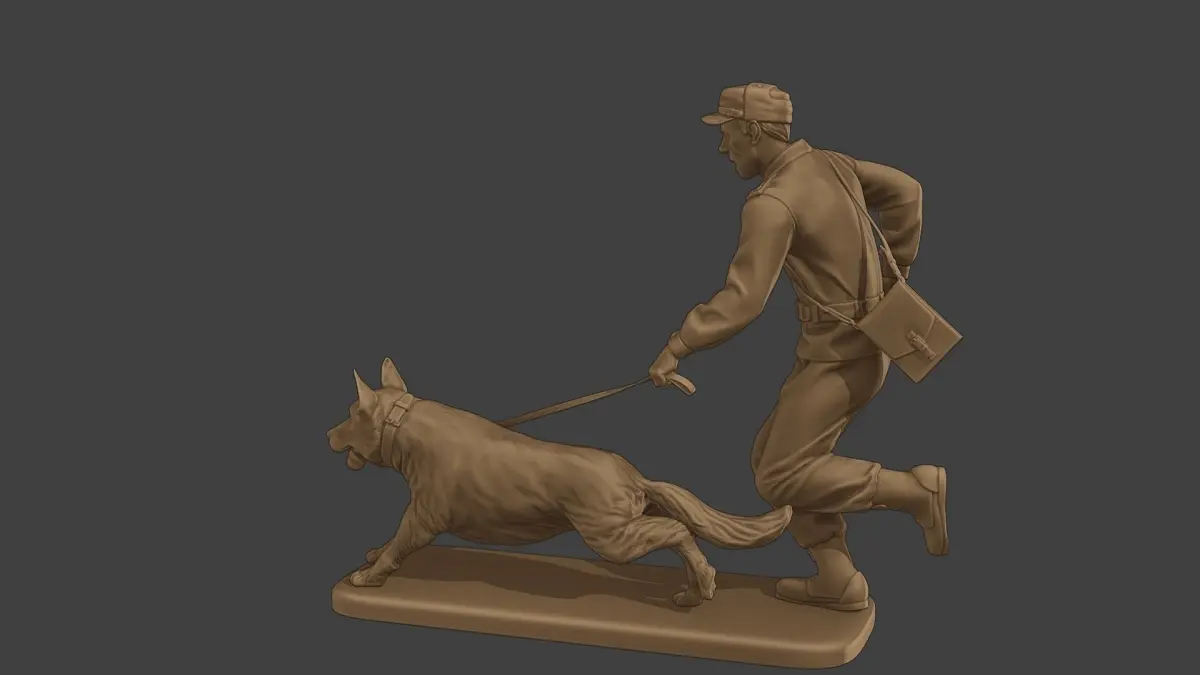 1 Mesh Model. Czechoslovak communist Police with a dog. Figure and base merged or figure only.