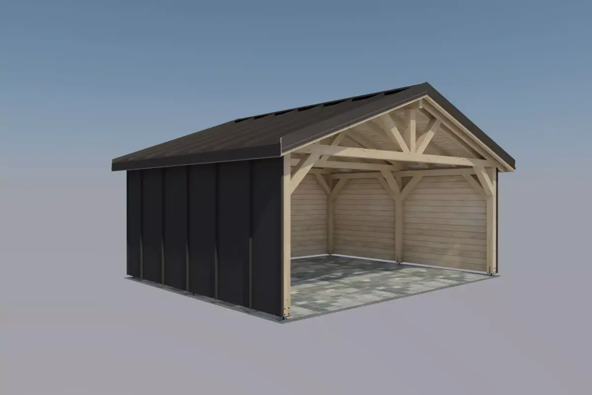 wooden carport 3d, carport with walls, timber garage 3d, metal sheet roof 3d, wooden shed 3d, parking shelter 3d model, architecture asset, backyard garage 3d, timber construction 3d, modern carport 3d, realistic wooden carport, exterior visualization asset, garage shed 3d model