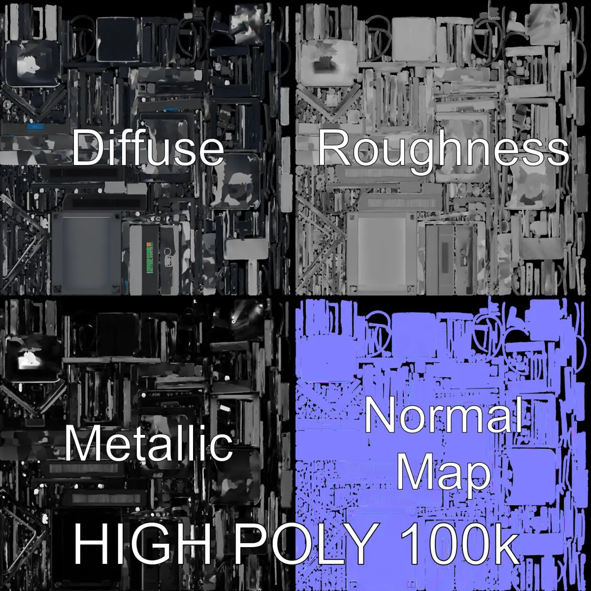 All textures are PBR with a resolution of 4096x4096, including Diffuse, NormalMap, and reflection/roughness/metallic maps, ensuring high quality in modern rendering engines. Accurate UV mapping without overlapping ensures detailed texturing.