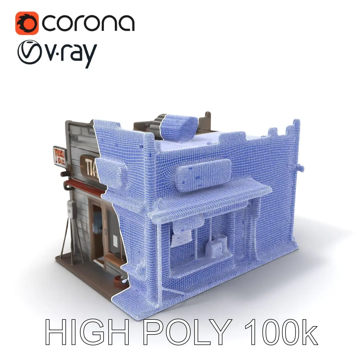 This 3D Rustic General Store model pack includes three levels of detail: low-poly for mobile (1000 triangles), middle-poly for environment (10,000 triangles), and high-poly for production rendering (100,000 triangles). The model is perfect for historical simulations, vintage scene creation, or architectural visualizations, offering a highly realistic representation with PBR textures. It includes Diffuse, NormalMap, and reflection/roughness/metallic textures, all at a high resolution of 4096x4096 pixels. The precise unwrapping ensures no overlapping UVs, making it suitable for use in any modern rendering engine, including game engines like Unity and Unreal. The first image is the reference used for creating the 3D model. It is important to carefully evaluate the quality of the model by examining the preview images that display the topology and polygonal mesh. These previews (WIRE and WEB 3D Preview) clearly demonstrate how accurately the model matches the original reference and how well the geometry has been executed. If you like this model, please give it a like and leave a comment!