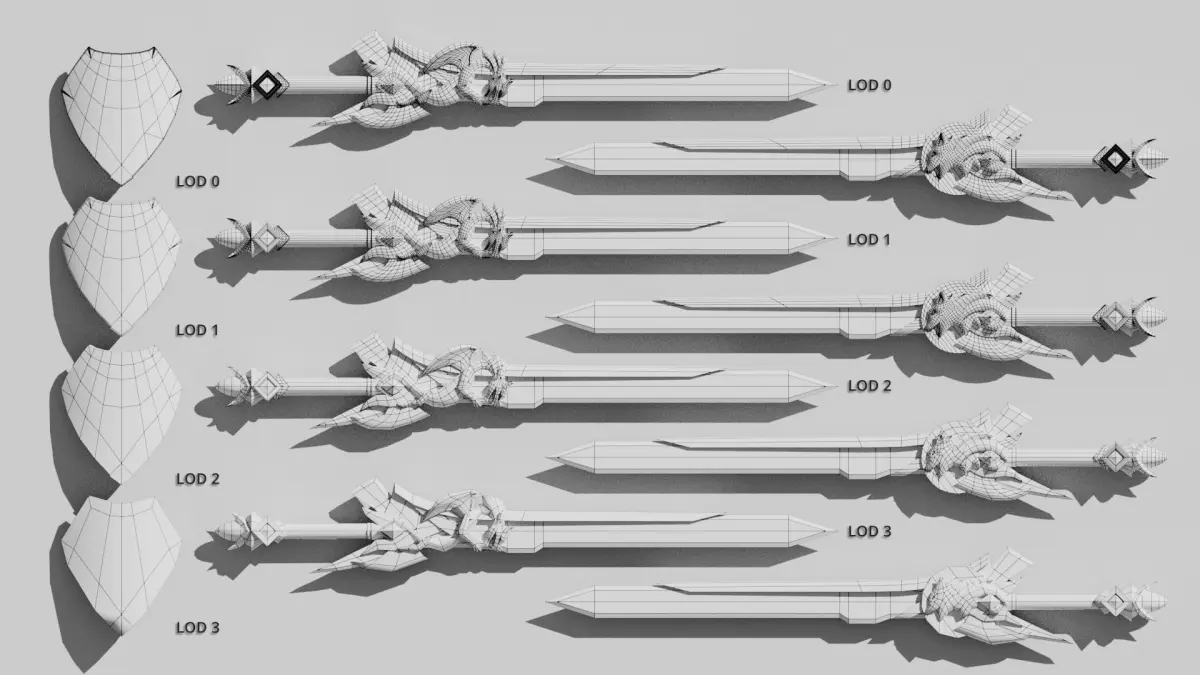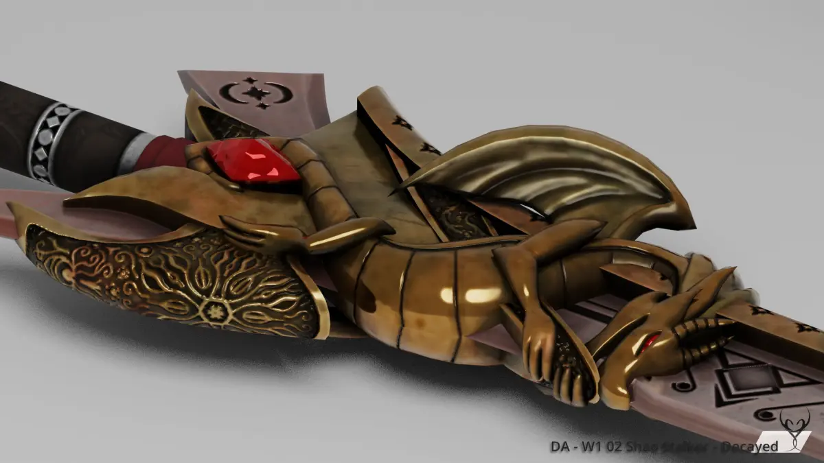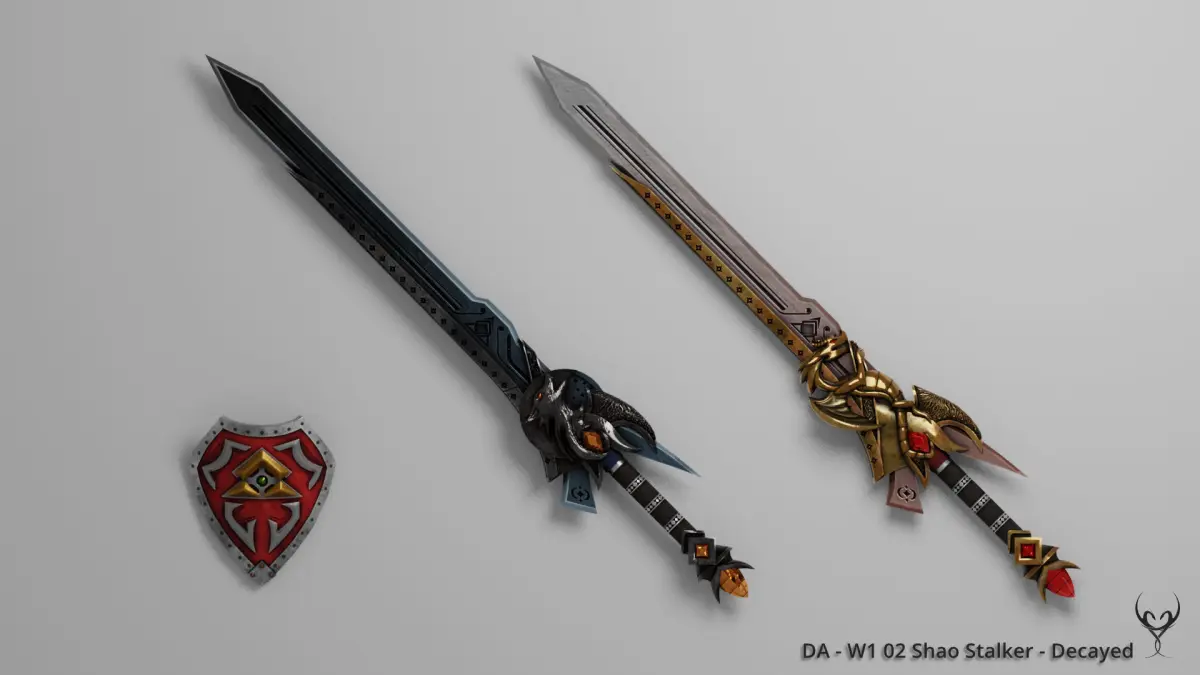 A kit about two sword like weapons and a buckler around the topic drqagon and wolves. The textures are made in PBR style (base colour, roughness, metallic, normal, ambient occlusion) and the models have a full LOD set.
