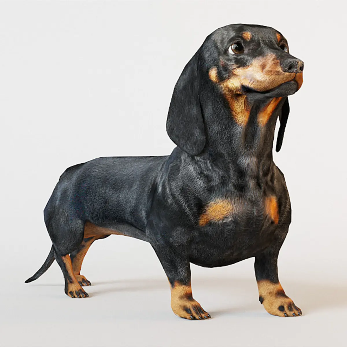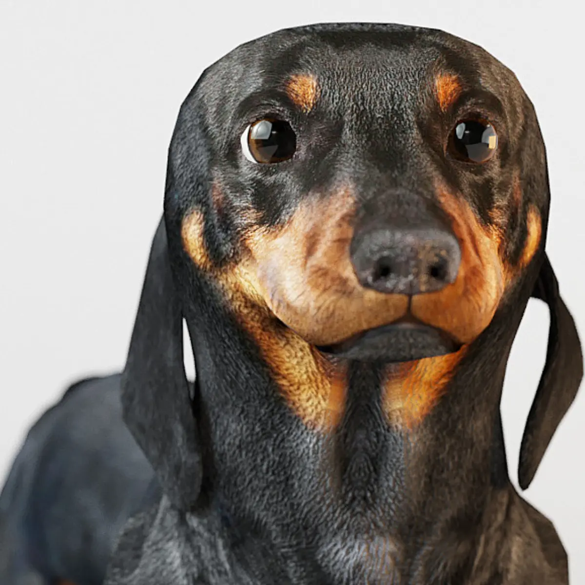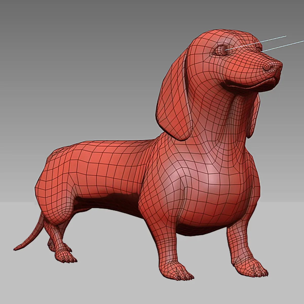 the eyes of the dachshund look at LookAt_Point, located in the scene (it can be moved, controlling the look of the dog), in OBJ there are just eyes.