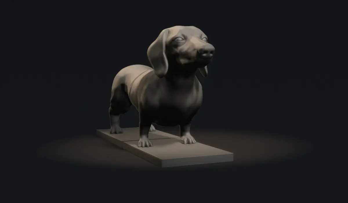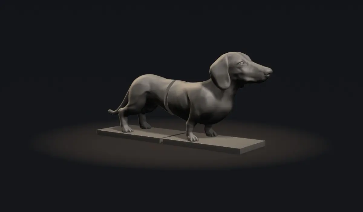 This is a 3D print book holder of 3D model Dachshund dog. I made a statue of Dachshund in Zbrush, and prepared this model for the book holder on the library shelf.