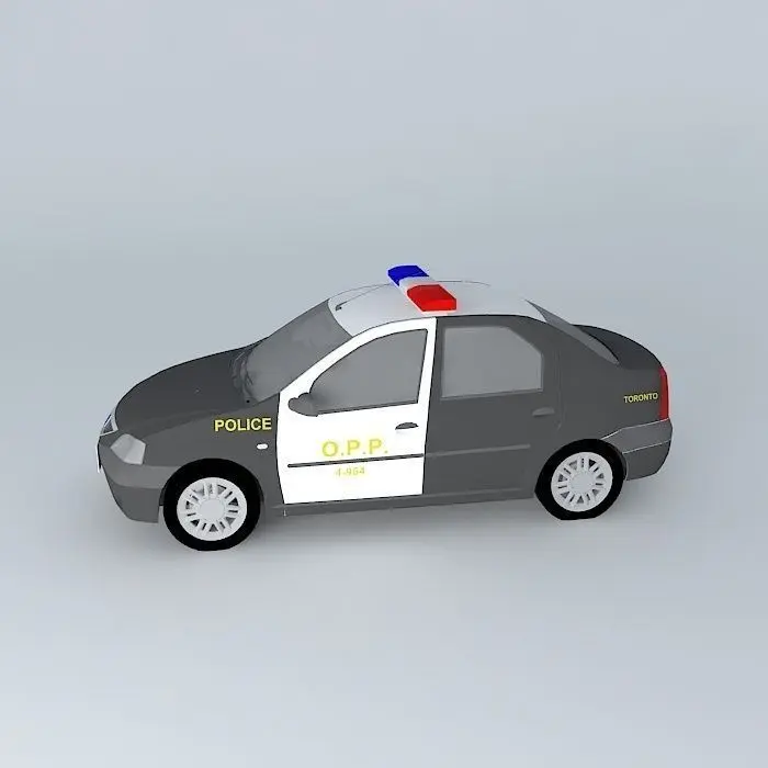 This 3D model was originally created with Sketchup 13 and then converted to all other 3D formats. Native format is .skp 3dsmax scene is 3ds Max 2016 version, rendered with Vray 3.00 Very special thanks to mandun (for providing me the same Dacia Logan I used to convert it as an Albanian police car), and .ıllı.AL.ıllı. (for providing me a nice pair of seats). This model was originally intended as a taxicab, but I decided to change it into an Ontario Provincial Police Cruiser. Besides changing the paint job, adding a pair of Ontario license plates, and a special light bar, I rescaled the dashboard to make the car right-hand drive. It's something I never did to its Albanian counterpart.
