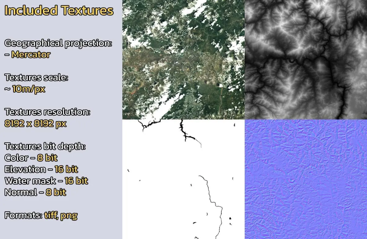 Warning: minor clouds/artifacts may be present on the diffuse color satellite texture due to the nature of the dataset. Check product images.