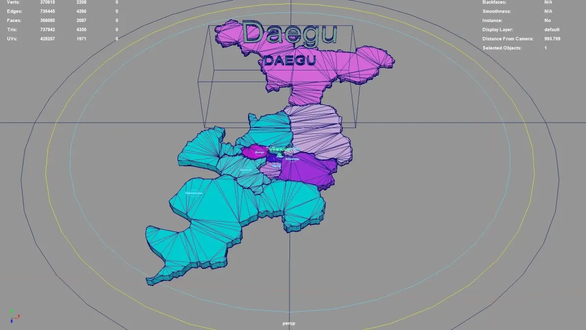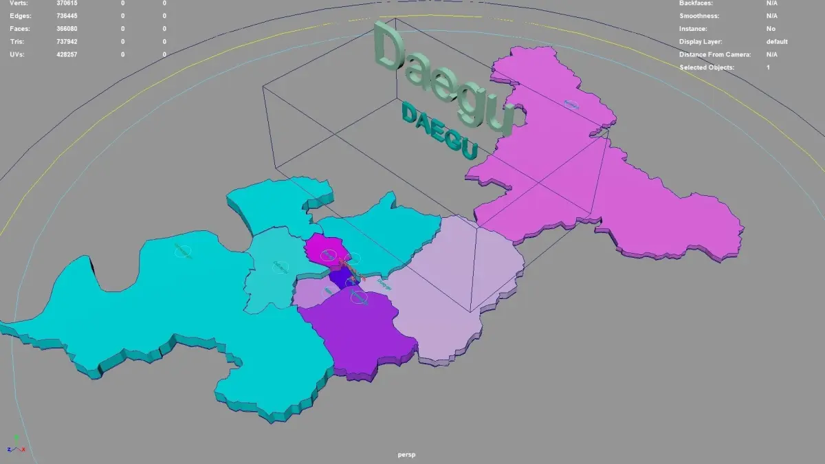 Daegu regions : The model is divided according to the administrative region of Daegu. Each region is clearly separated so you can easily isolate it or change the colors. Names are also editable and separate.