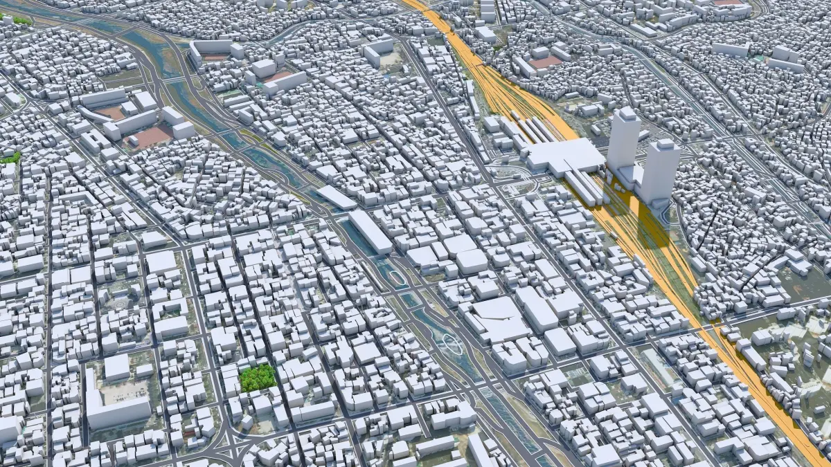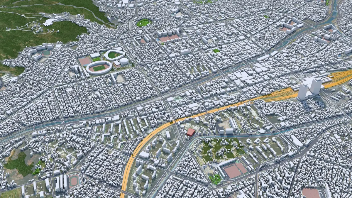 Accurate 3D city model and its surrounding area based on GIS data Year 2022