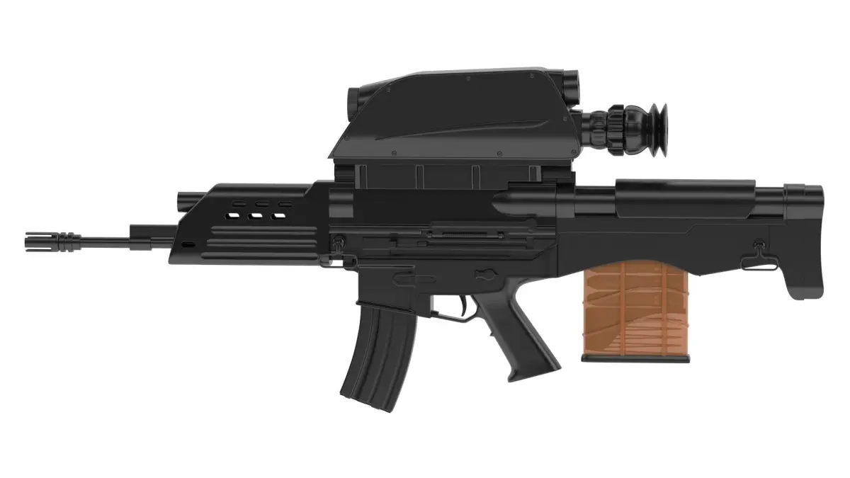 The S&T Daewoo K11 DAW (Dual-barrel Air-burst Weapon) is a multi-weapon resembling the earlier US Objective Individual Combat Weapon in concept, design and operation. It consists of two separate weapons combined into a single unit: a lower assault rifle chambered to fire 5.56×45mm NATO rounds and an upper 20×30mm (caliber of shell x length of propellent case) grenade launcher firing both conventional and air-bursting 'smart' grenades, along with its integrated digital sighting unit.