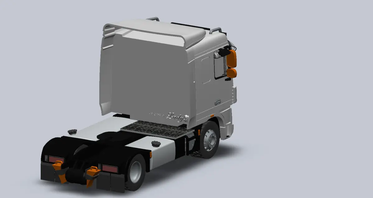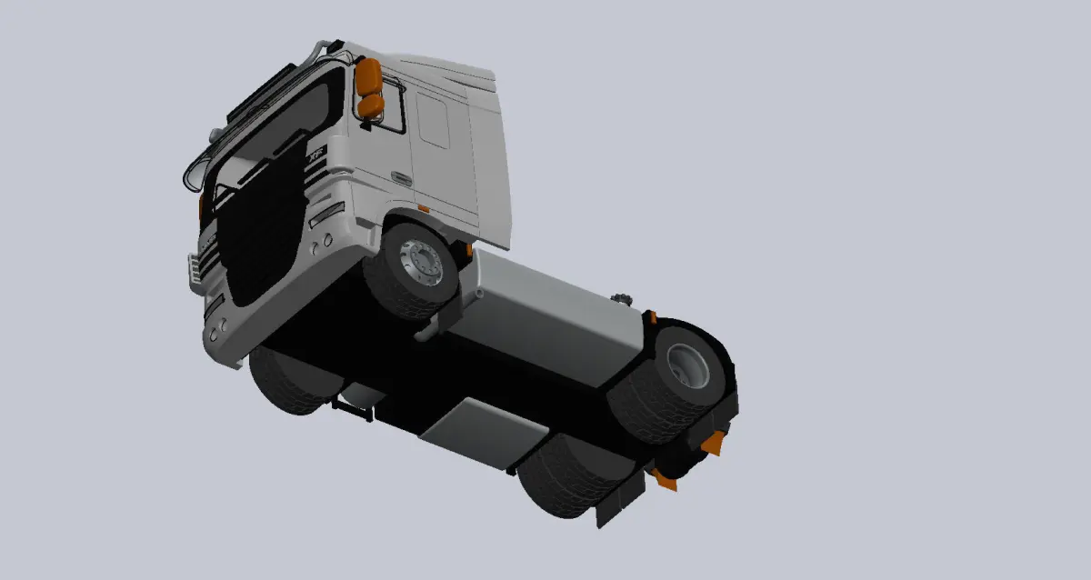 This model consists of as many parts as it's necessary to build up an excellent miniature. It's designed about an older type of DAF tractor.The printed object is rolling and the stop wedges are functionable. I used steel axles, so you won't find any stl and I don't recommend to print it. For the 100% model, you can use D= 2,2 - 2,3 mm steel rod, L= 57 and 71 mm.I marked the colour and material I used in the filenames.Please note: the one piece files are not for print, only for preview. You can find all SW and stl files in the archives.There are more ways to split the cabin: the seats and the front grill can be made separately. I made it in one piece: I had a hard time with the supports but less work with the glueing.The plateau I printed with texture: I applied a steelplate pattern from ideaMaker library- I uploaded a jpg what you may can use. Important that you can do this only on a standing part, not a flat layed one (with a wide brim or raft it works).The uploaded photos show a 150% miniature; I made it 2 times, the first was a 100% model, but this one looks better.The cabin you should print with a dual extruder printer to achive the real look. The black and white parts of the cabin are marked in the filenames. It can be split more ways, you find the stl files for any versions: the seats and the front grill you can print separately. I made it merged: I had a hard time with the supports but less work with glueing.Please keep the order at glueing: first glue the steering wheel, then the top part. After that come the small accessories (lamps, door handle etc), then windshield, windshield wipers and sun protections - here you can decide if you insert side windshield or not (at FDM printing you won't see the inside parts through it)-, then upper chrome pipe. The black mirror comes next, not easy but you can make it. The driving mirrors are menat to flipped in. If it's too hard, scale the mirror a bit down and print again. The last item is the back plate. I recommend to glue the plateau after the cabin is fixed. The exhaust pipe you can fix to the mud buffle and the undercarriage. The stripes works as a regular cable tie- or you can use a real one :)Have fun! Let me know if you need other file formats.