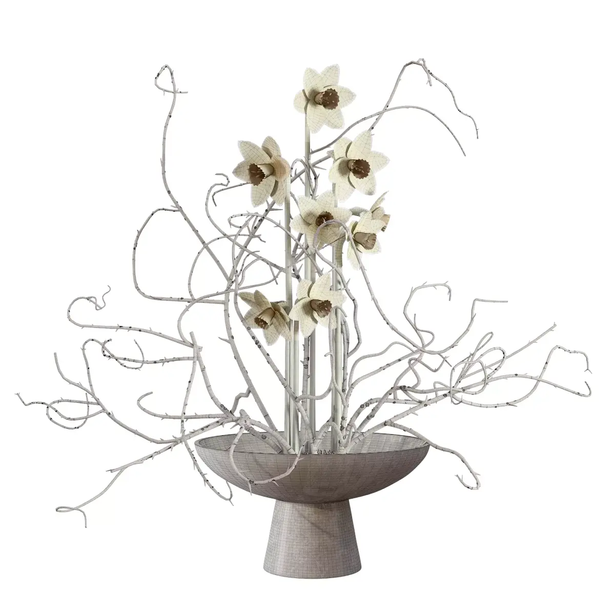 Name: Daffodils_Dry_Twisted_Branch_BouquetFormat: 3Ds Max 2017Export: FBX, OBJ, MATRender: VRay (7.x), Corona (13)Polys: 448759Verts: 485997Units: CentimetersDimension: 142.41 x 89.29 x 126.39Modeller: Azadeh Kheirandish