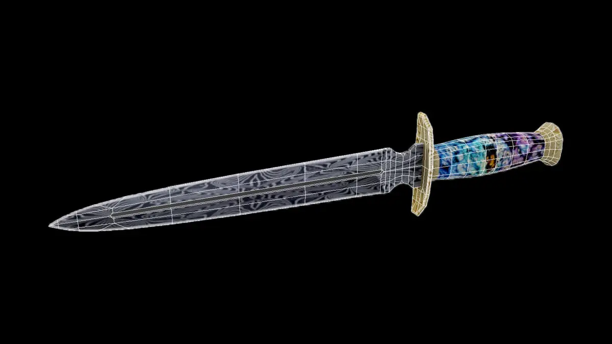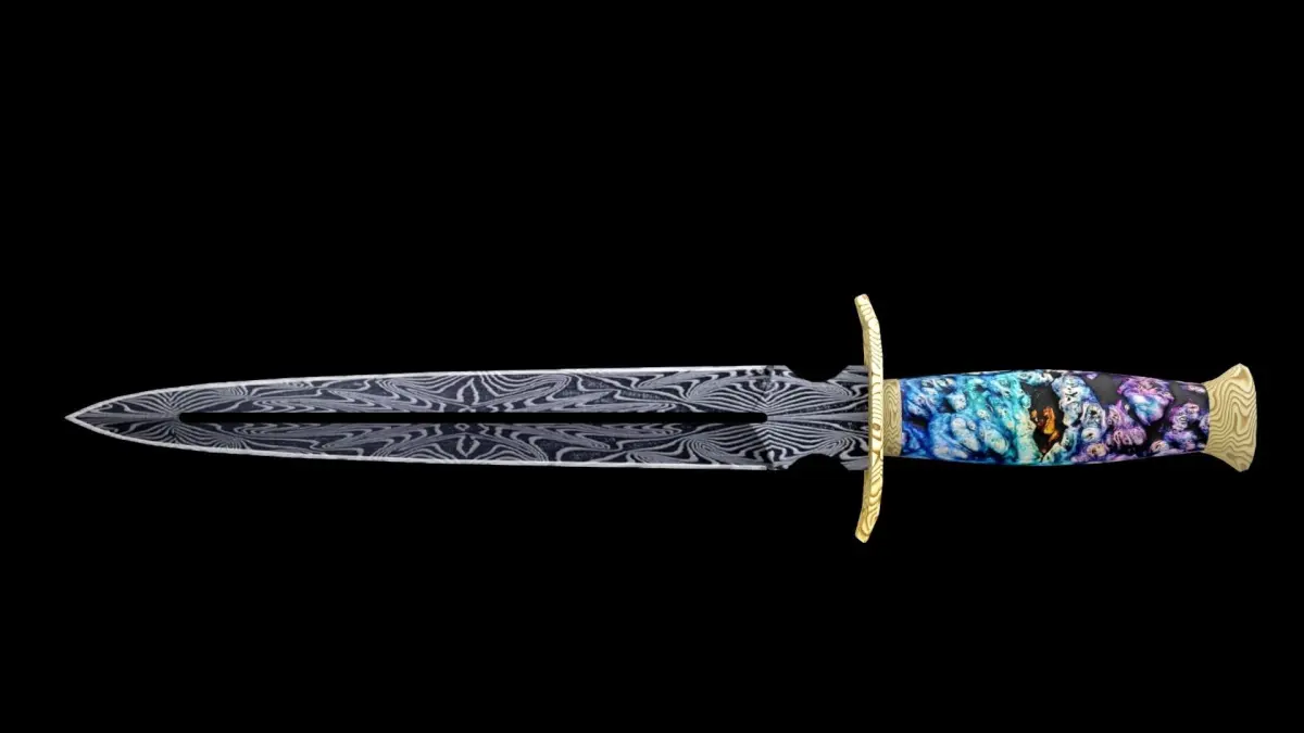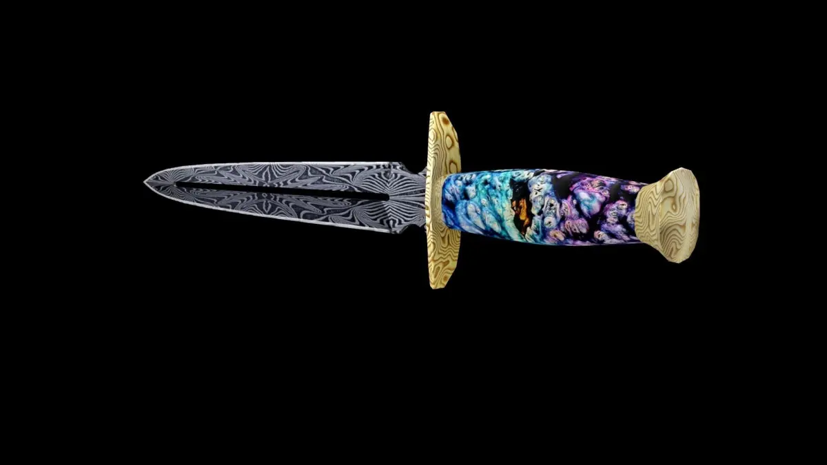 A Very Detailed Low Poly Knife with High-Quality Textures. The blade has a detailed damascus steel base, and the handle is stabilized wood (wood and resin) .