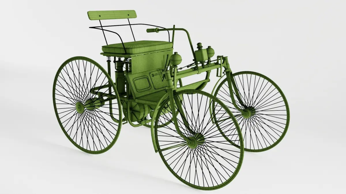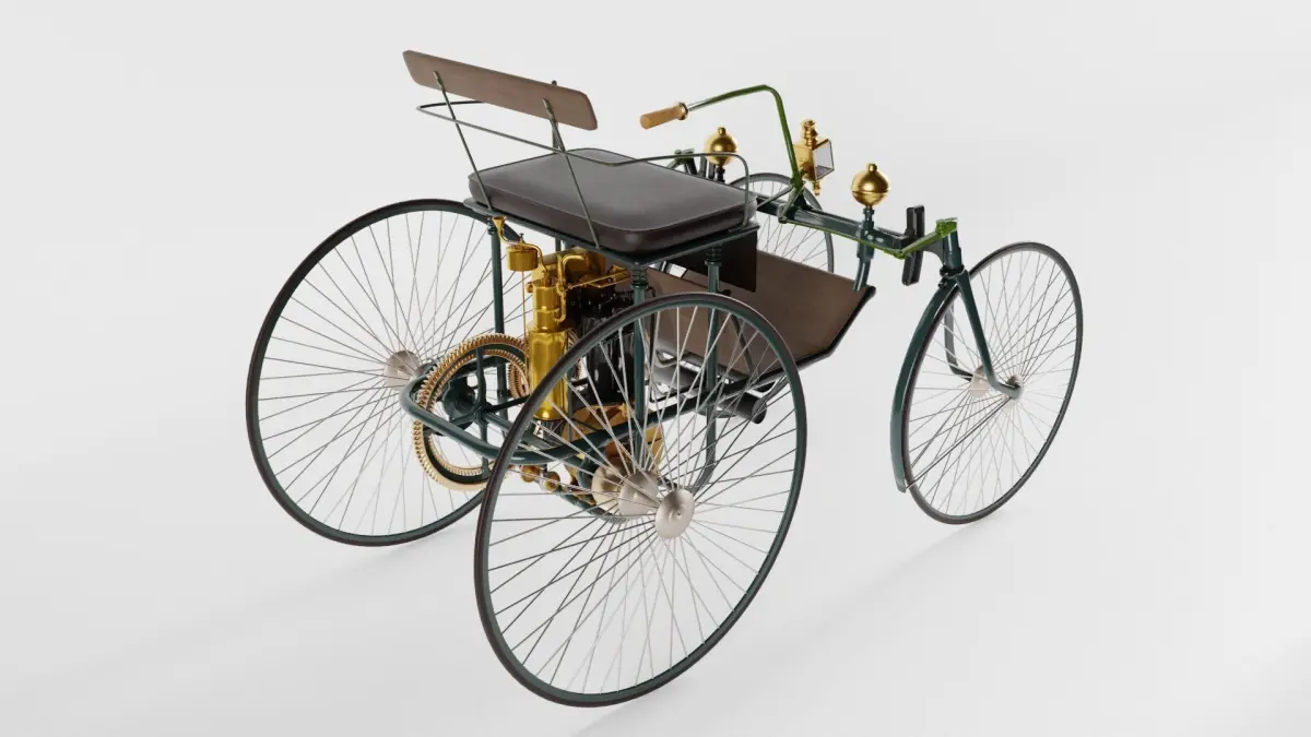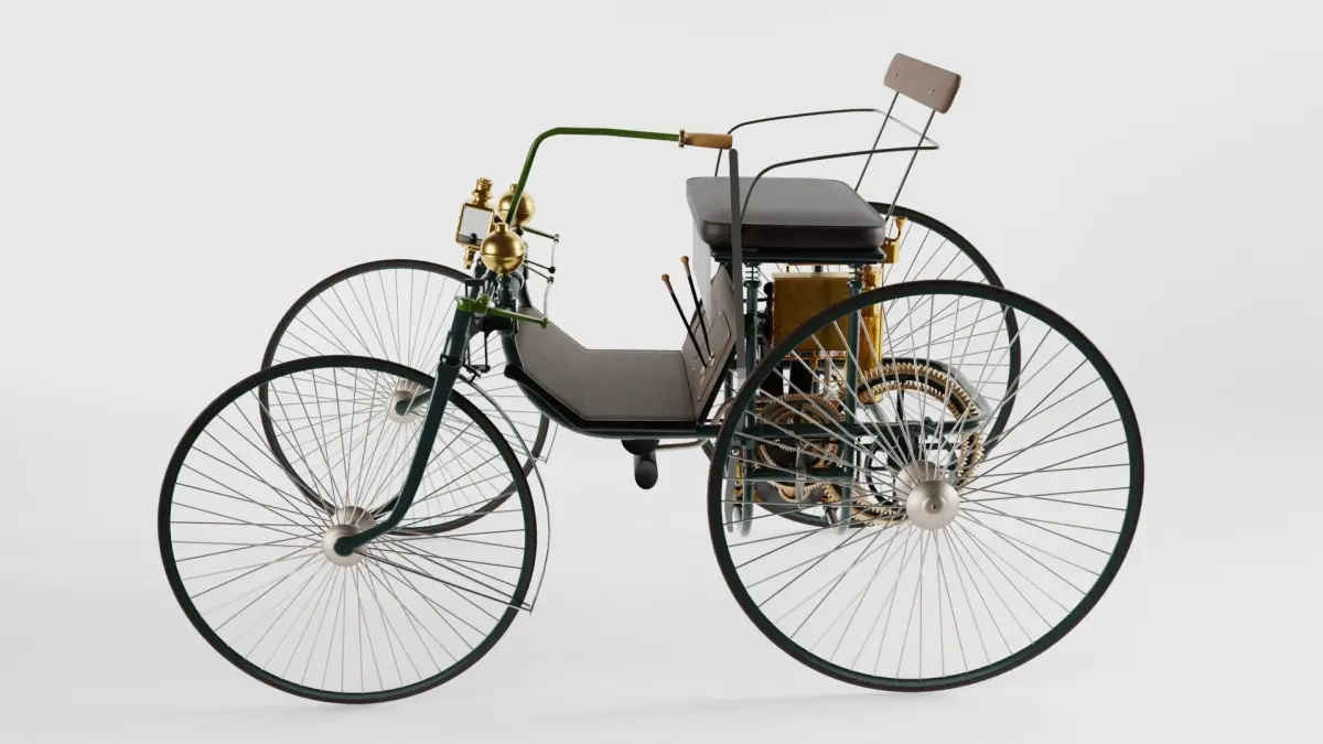 The Daimler Stahlradwagen (steel-wheeled car) was Gottlieb Daimler's second motor car and was first presented at the Paris World's Fair in 1889. Its top speed was 18 km/h.