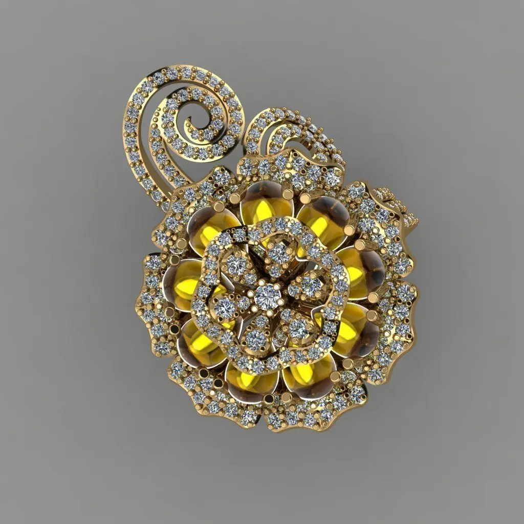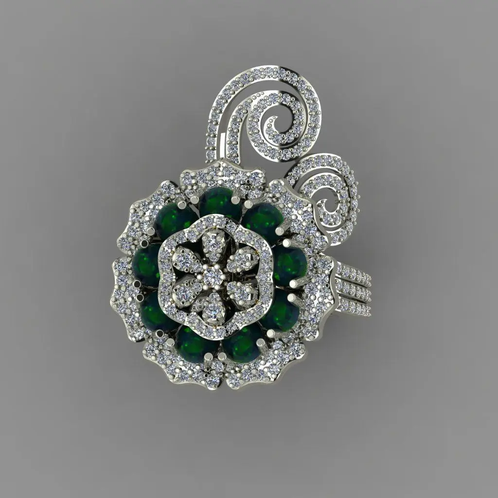 Home Catalog Daimond Flower With the Top Of Pear Green Opals 3D Ring 3D print model