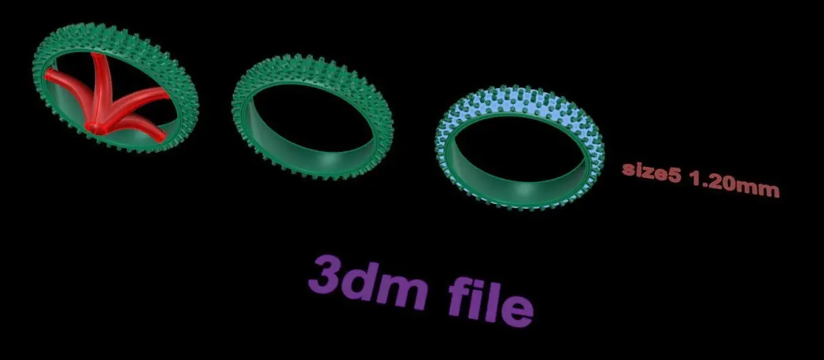 File Download: 3dm file for personal use and adjustment / 1 OBJ file with stones for rendering / 1 STL file for cast purposes without stone / 1 STL files ready for personal use without stone