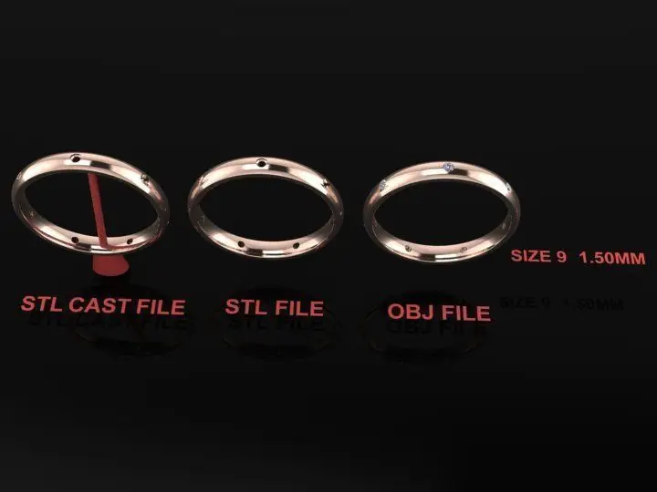 Hi, this ring comes full of files for print, cast, and render purposes. Stones have been properly designed for fast setting and is formated for no issues. Design is light in metal weight with rounded corners for easy wear and fast finishing. More ring sizes available in this design. Please look through my page. For any questions please contact me.