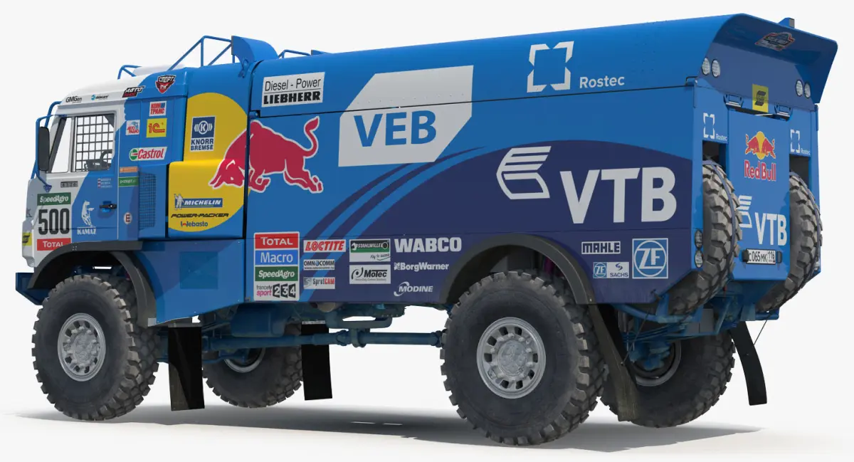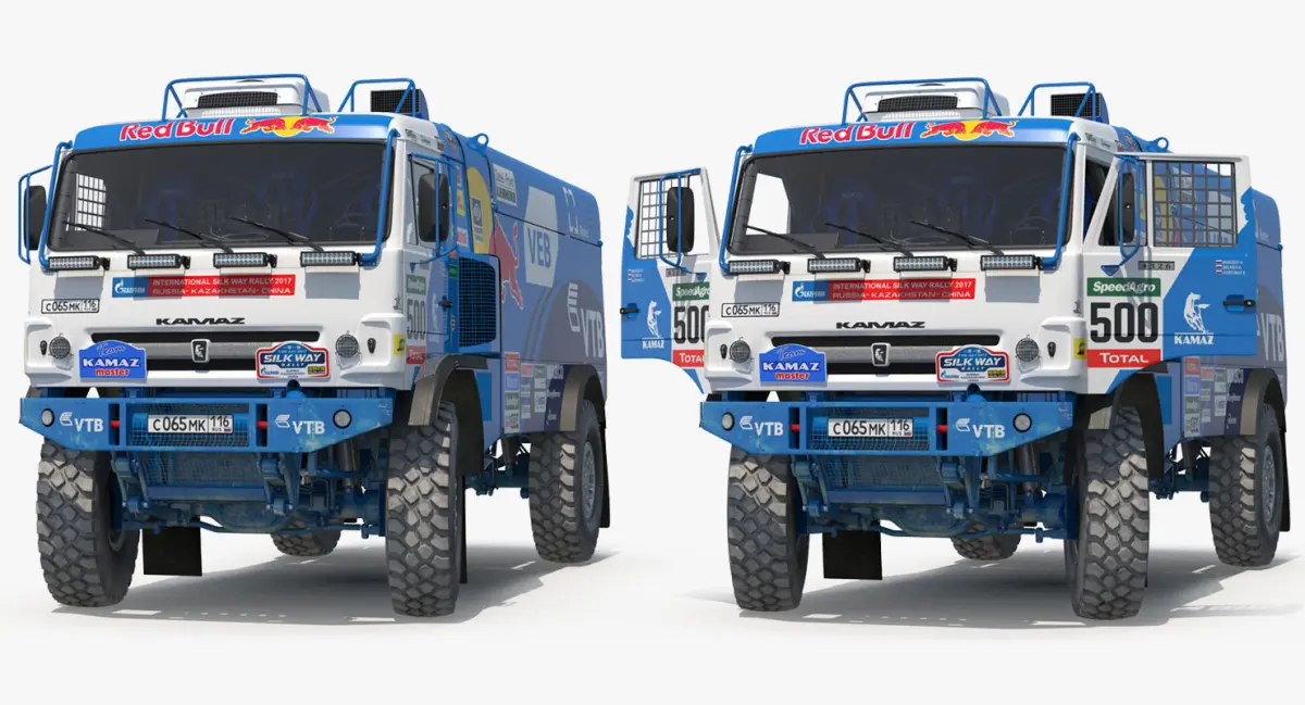 Dakar Racing Truck KAMAZ 4326 VK is ready to be animated. You can easily position it the way you need or animate.