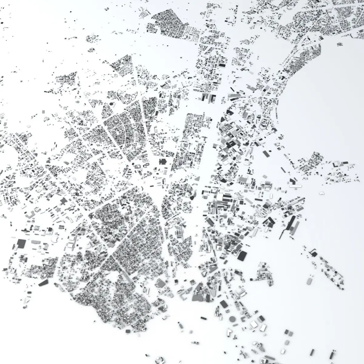 These models are designed to show and present the city/area in the title in a minimalistic concept. They show a close to exact streets and buildings alignments and building heights (excluding parts where there is no or insufficient data to build 3d geometry) therefore they can be used for many purposes but they are not designed to build ie. high precision urbanscape.