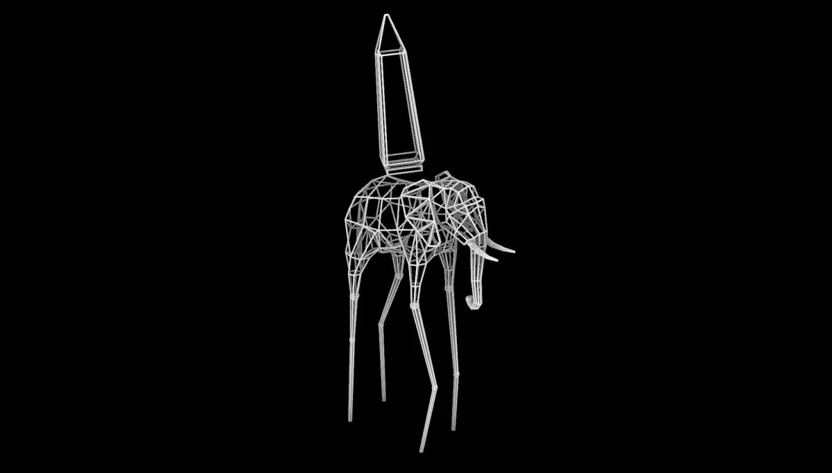 There are various cultural depictions of elephants, where they are often viewed as symbols of strength, dominance and power due to their bulk and weight. Dalí contrasts these typical associations by giving the elephants long, spindly, almost arachnid-like legs, once described as multijointed, almost invisible legs of desire. Dalí enhances the appearance of strength and weight by depicting the elephants carrying massive obelisks on their backs, however, on close inspection it can be seen that these weights are floating. The obelisks on the backs of the elephants are believed to be inspired by Gian Lorenzo Bernini's sculpture base in Rome of an elephant carrying an ancient obelisk, and was mentioned in several communications of the artist, so can be considered a reliable claim.