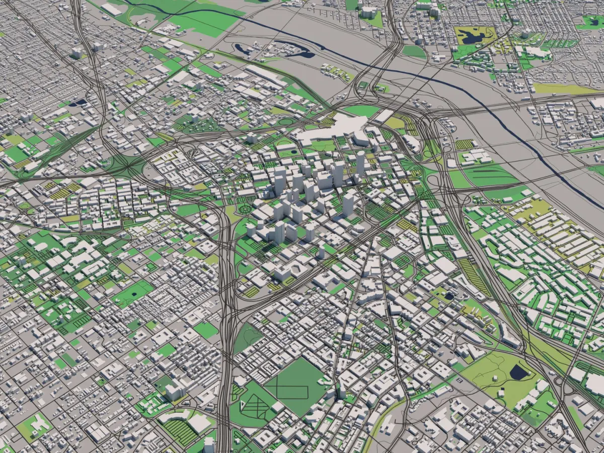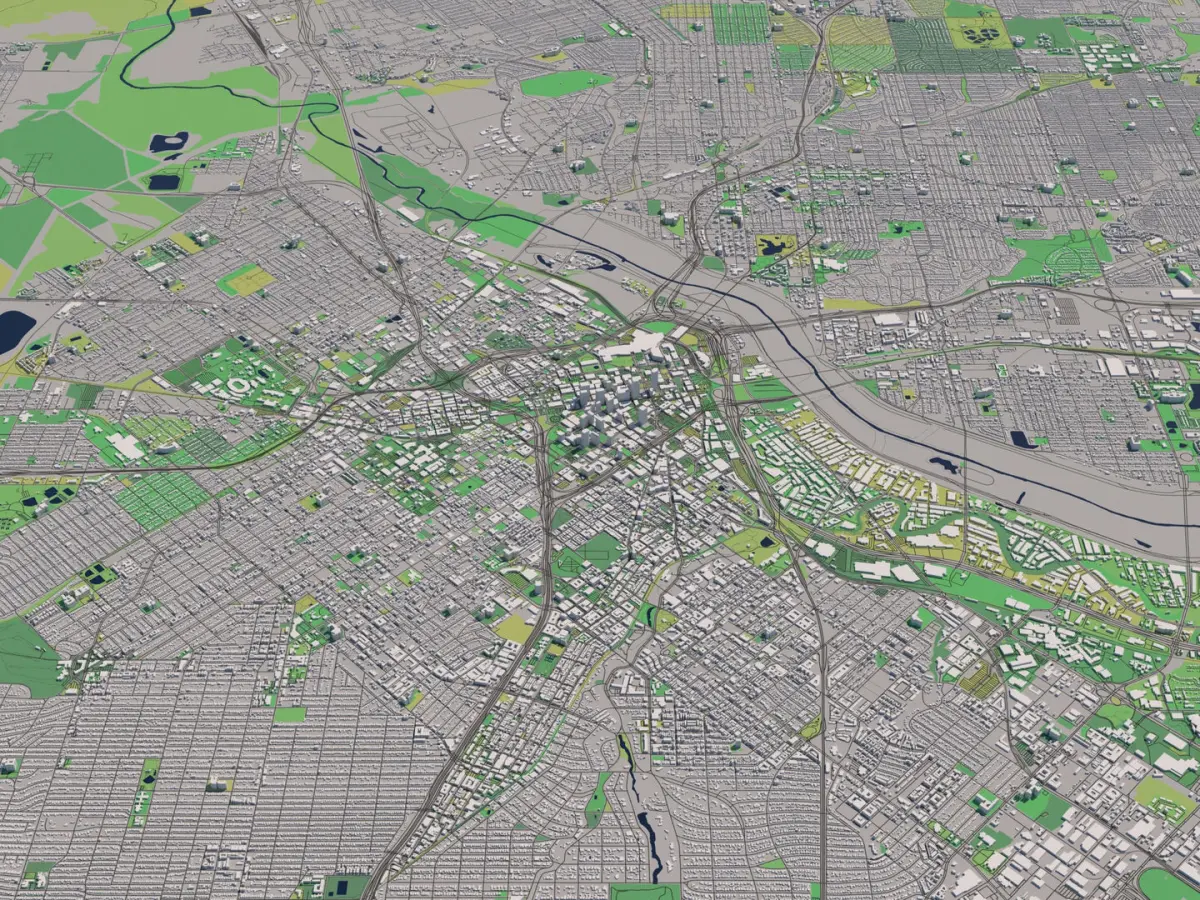 A DETAILED 3D MODEL CITY MAP OF DALLAS, TEXAS: