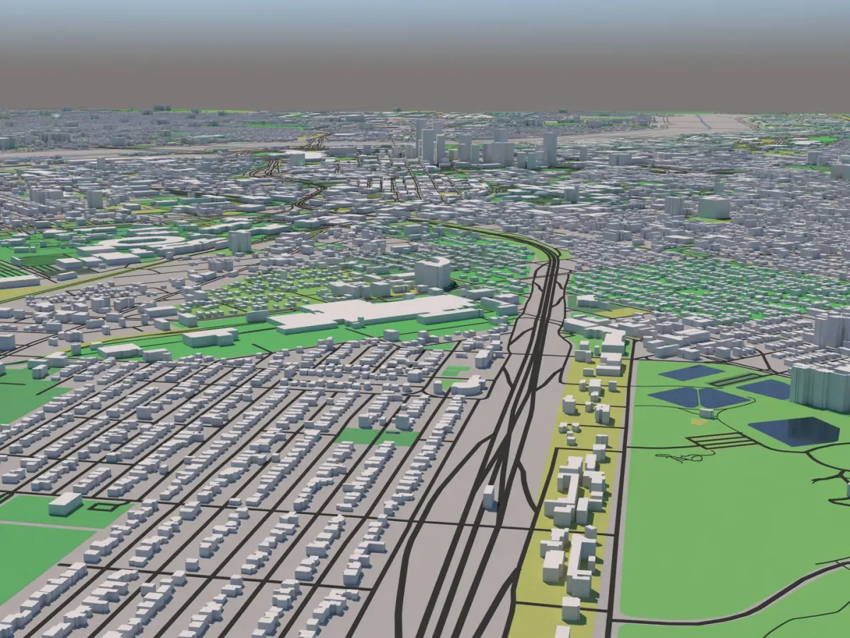3dsmax 2015 V-Ray 3.60.03 LWF maps: no texture maps used shader: VRrayMtl the area is 25 x 25 km this model uses OSM data
