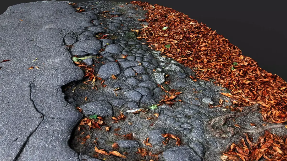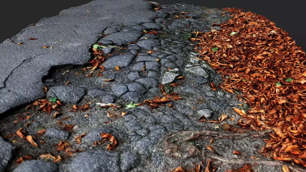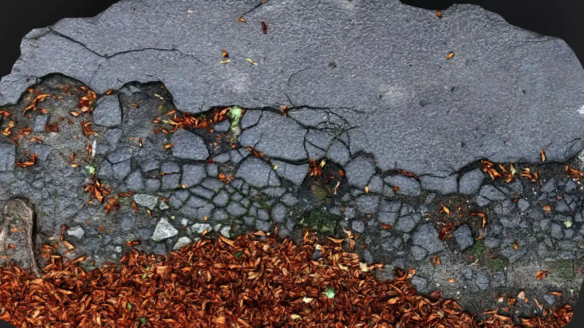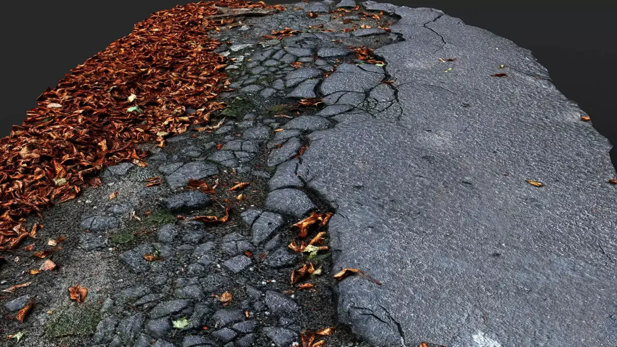 damaged asphalt road cracked debris part PBR photogrammetry Low-poly 3D model