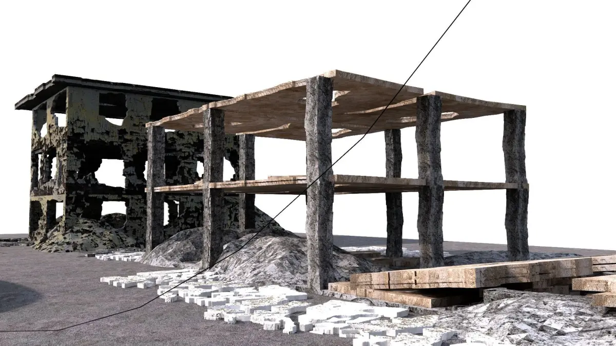 Two models of collapsed and damaged buildings and damaged lampposts and similar models around. Overlay files are available in the content. Images and video have been uploaded as an example. You can use the damaged building model in your desired project, game or movie scenes. Thank you for the interest you have shown. Please do not forget to like and comment. You can have the opportunity to make more economical purchases with the discount coupon in my profile.