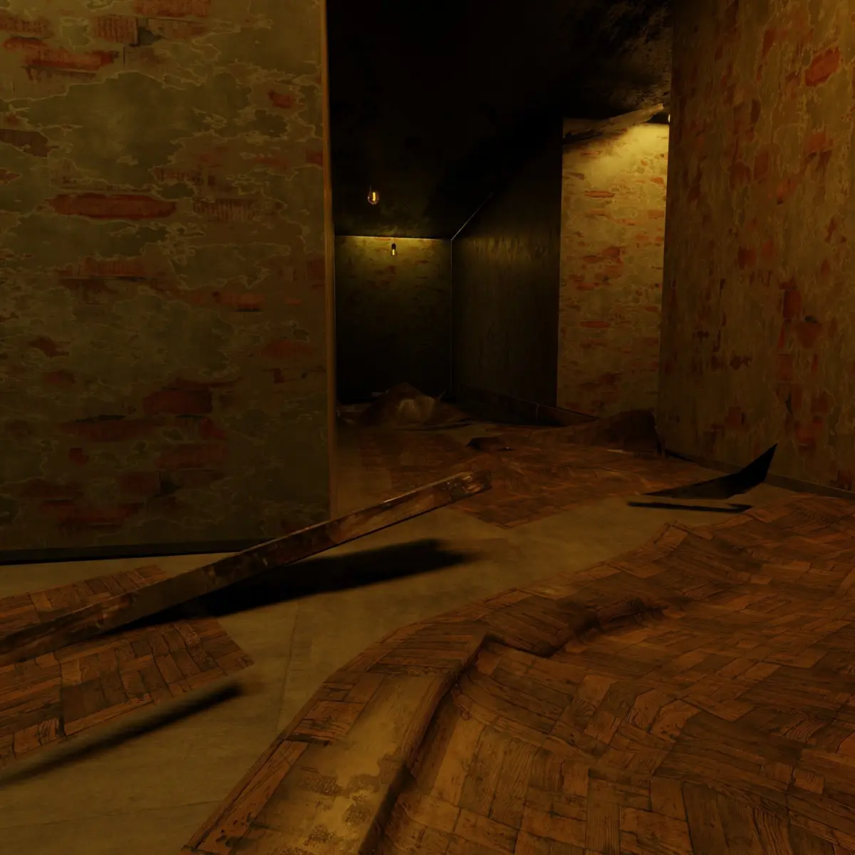 HIGHLY DETAILED 3D MODEL OF A DAMAGED HALLWAY