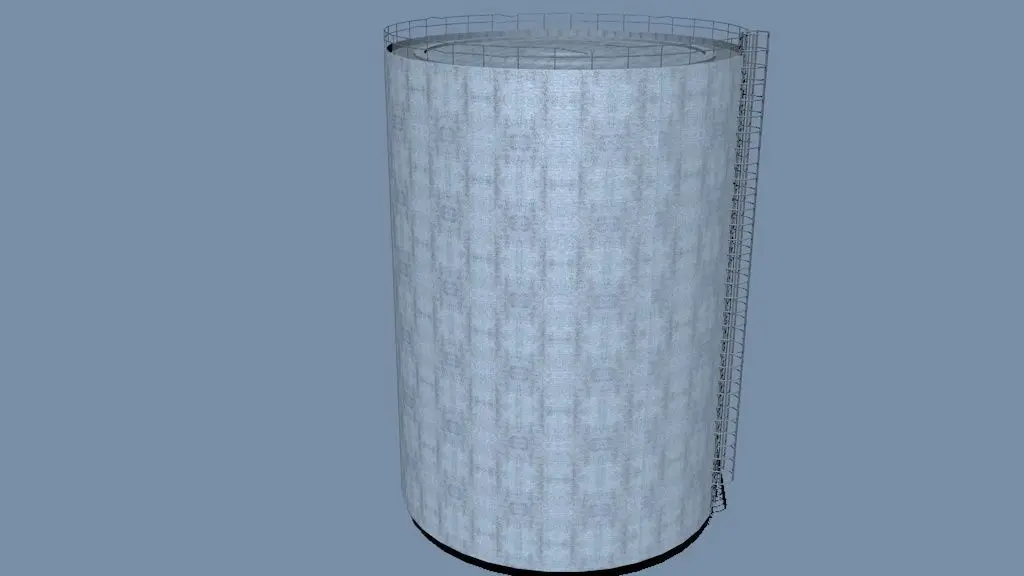 A silo made with C4d. the silo is damaged and accessable. There's a ladder leading to the topside of the silo. The top railing got minor damages as well as the ladder/outer railing