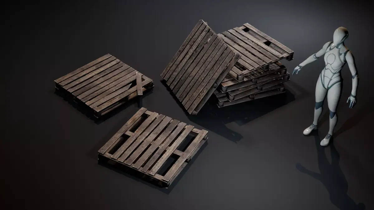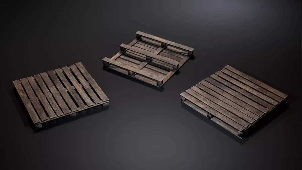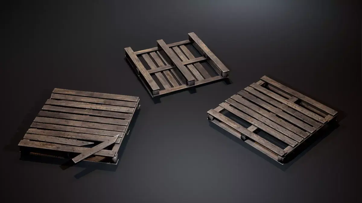 The Wooden Pallet Set includes three game-ready wooden pallets with different levels of wear: from almost new to heavily damaged. These props are perfect for industrial environments, warehouses, loading areas, construction sites, post-apocalyptic settings, or any scene that needs realistic wooden clutter. Use these pallets to quickly populate industrial scenes with believable and detailed environmental props.