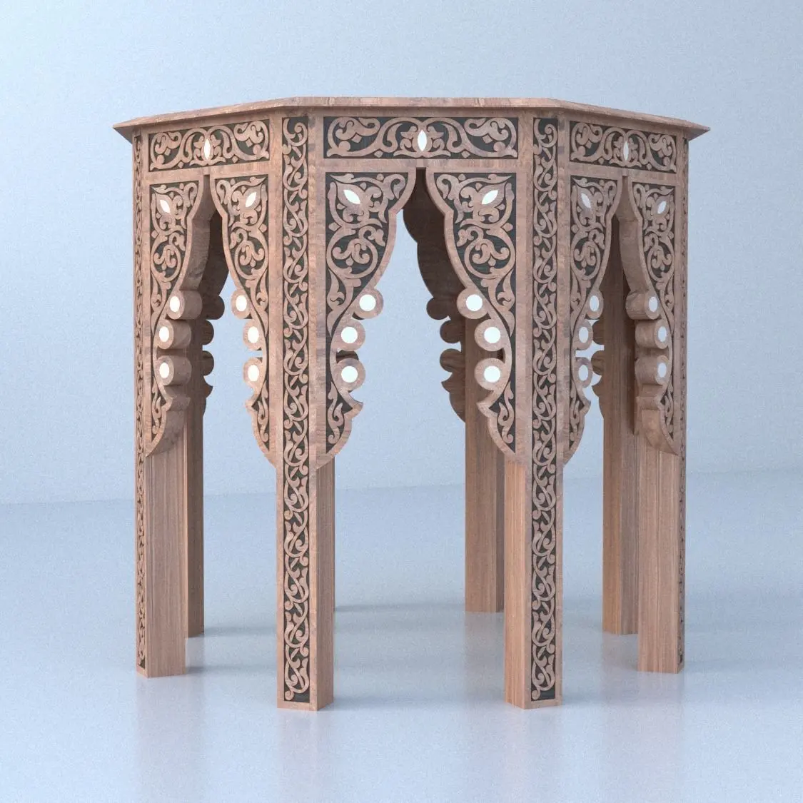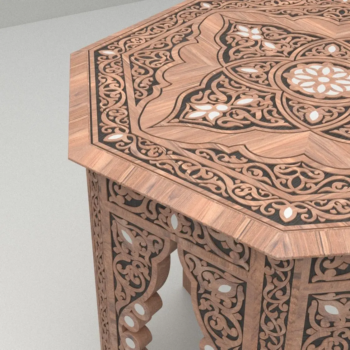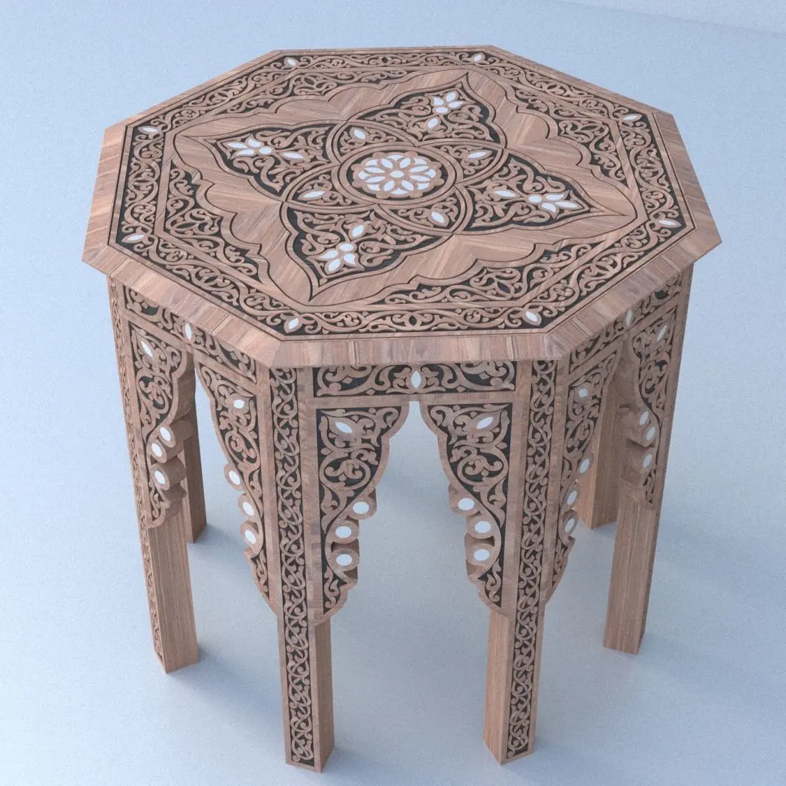 Octagonal coffee table Inlaid with mother of pearl Syrian Marquetry Carved table Oriental Style Side tableDimensions: 485mm x 485mm x 420mm